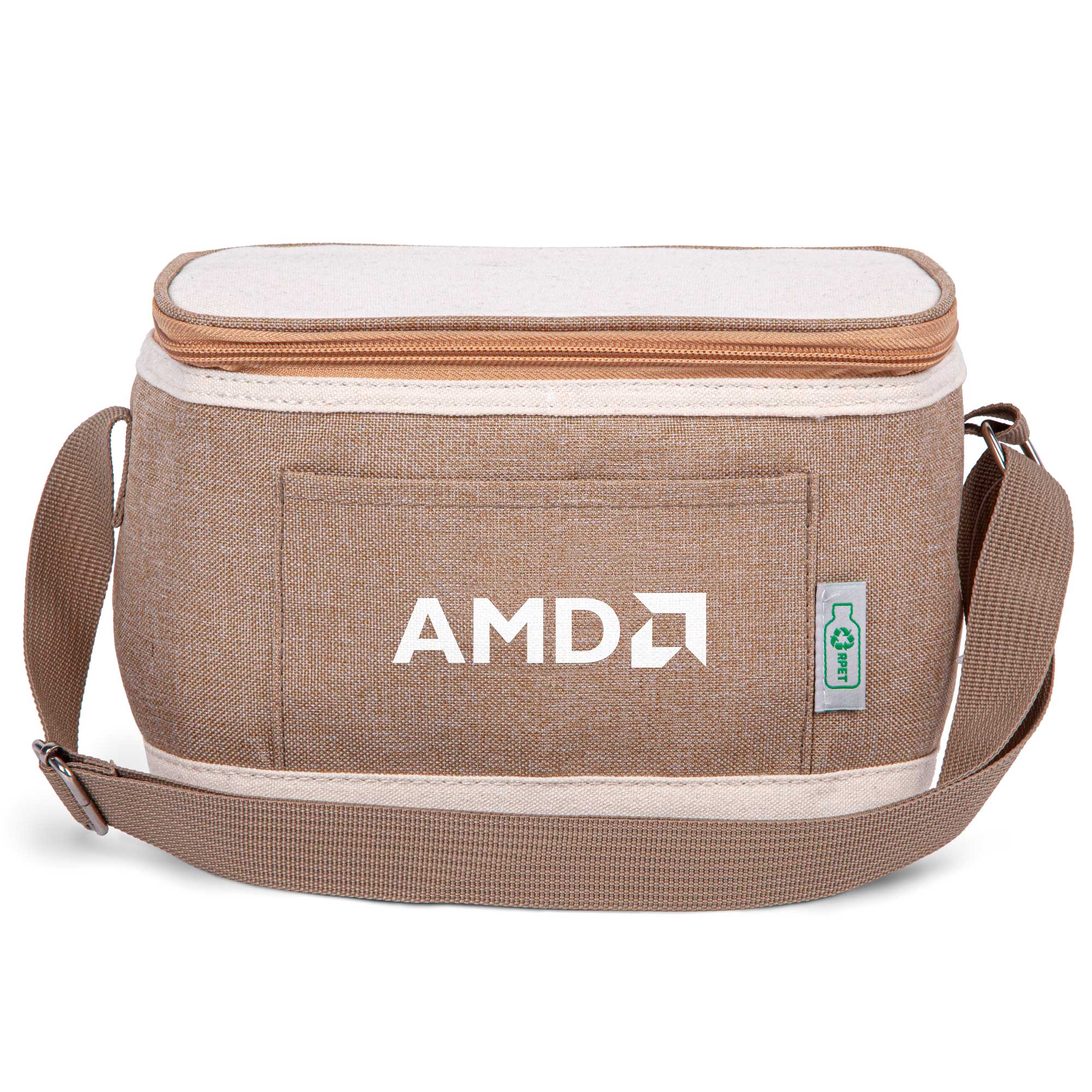 Nourish your body and the planet with the Ava rPET Lunch Bag a stylish, sustainable way to pack your meals. Made from recycled PET fabric, it helps reduce plastic waste while keeping your food fresh. Featuring a two-tone design with elegant textures, it includes a zipper top, front pocket, adjustable strap, and room for up to six cans perfect for meals and snacks on the go. Complies with Prop 65. 9 1/2″ L x 6 1/2″ W x 6″ H