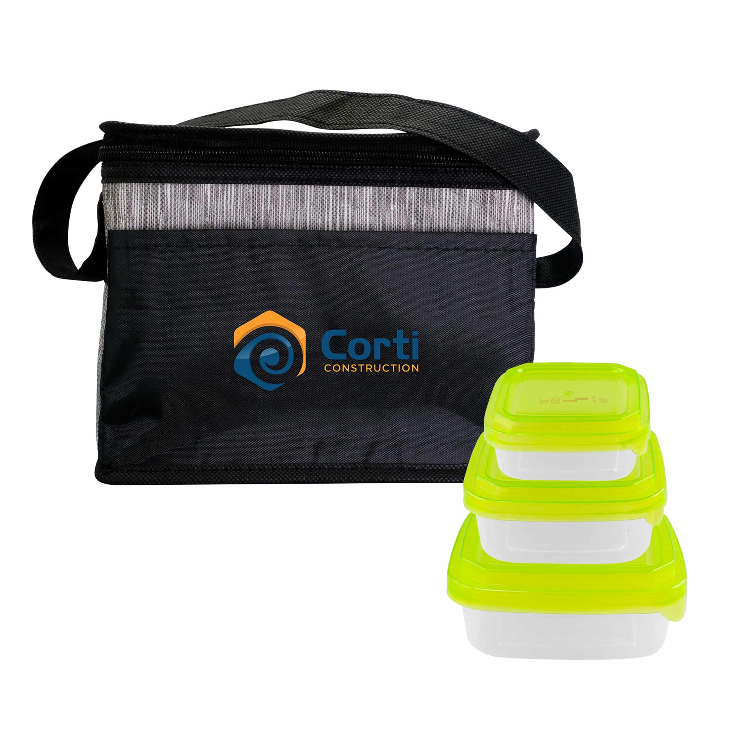 Introducing the sleek and stylish Black Graph Cooler Bag, designed with a convenient full top opening for easy access. This perfect on-the-go companion comes equipped with Square Portion Control Containers to help you maintain healthy portions and stay on track with your wellness goals. Say goodbye to bland and boring lunches, and hello to a more organized and satisfying meal prep experience. Elevate your daily routine with this functional and chic cooler bag that combines practicality with modern design. Complies with Prop 65. 8″ L x 7″ H x 6″ W