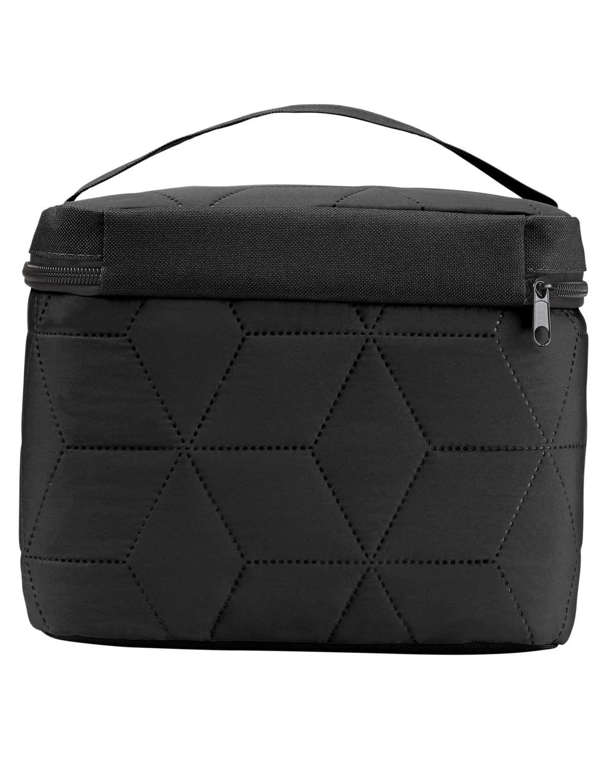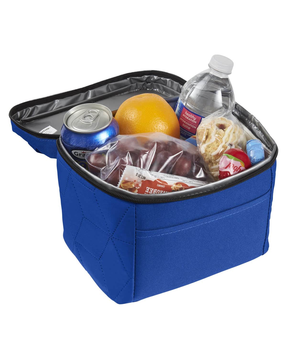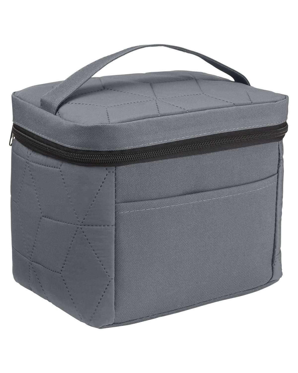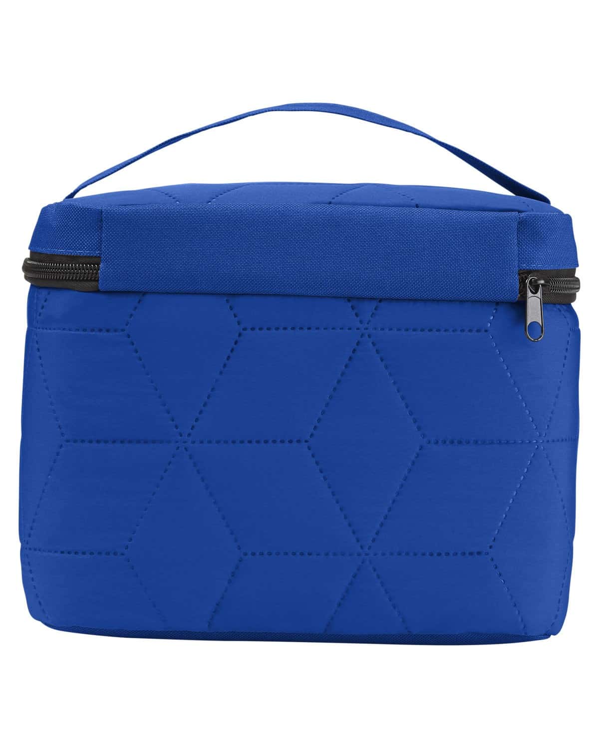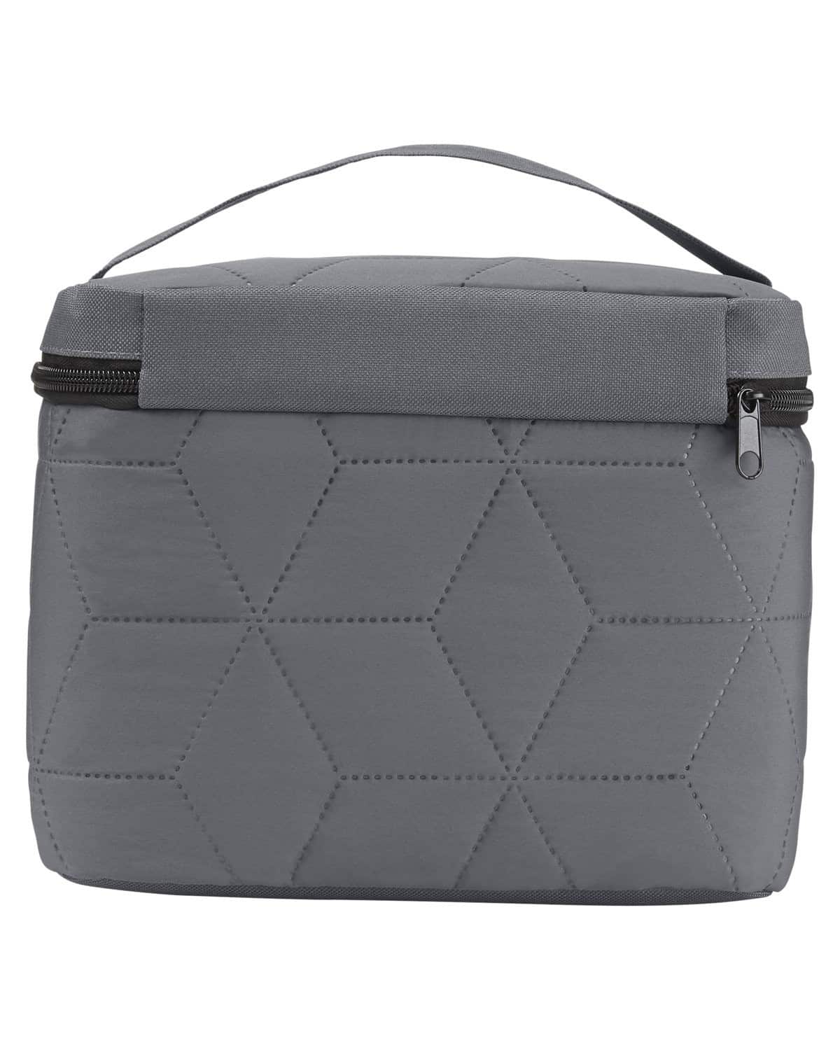 300T Polyester. Soft, luxe finish with ultrasonic snowflake design. Top zippered opening to main compartment. Front pocket. PEVA lining keeps items warm or cold. Holds 6 cans. 8.7000″ W x 7.5000″ H x 6.3000″ D