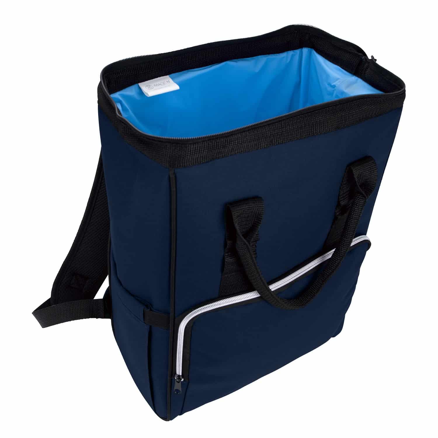 With its heat-sealed PEVA lining, this cooler tote-pack keeps your beverages and snacks cool and fresh wherever you explore. Its front zippered storage pocket and expandable elastic side slip pockets provide plenty of places to tuck essentials, and the wide wired opening with zippered closure gives you easy access to your refreshments. Carry this insulated bag with either the padded, adjustable backpack straps or cushioned handles for extra convenience and versatility on all your outings. 11.44″ W x 15.75″ H x 6.31″ D