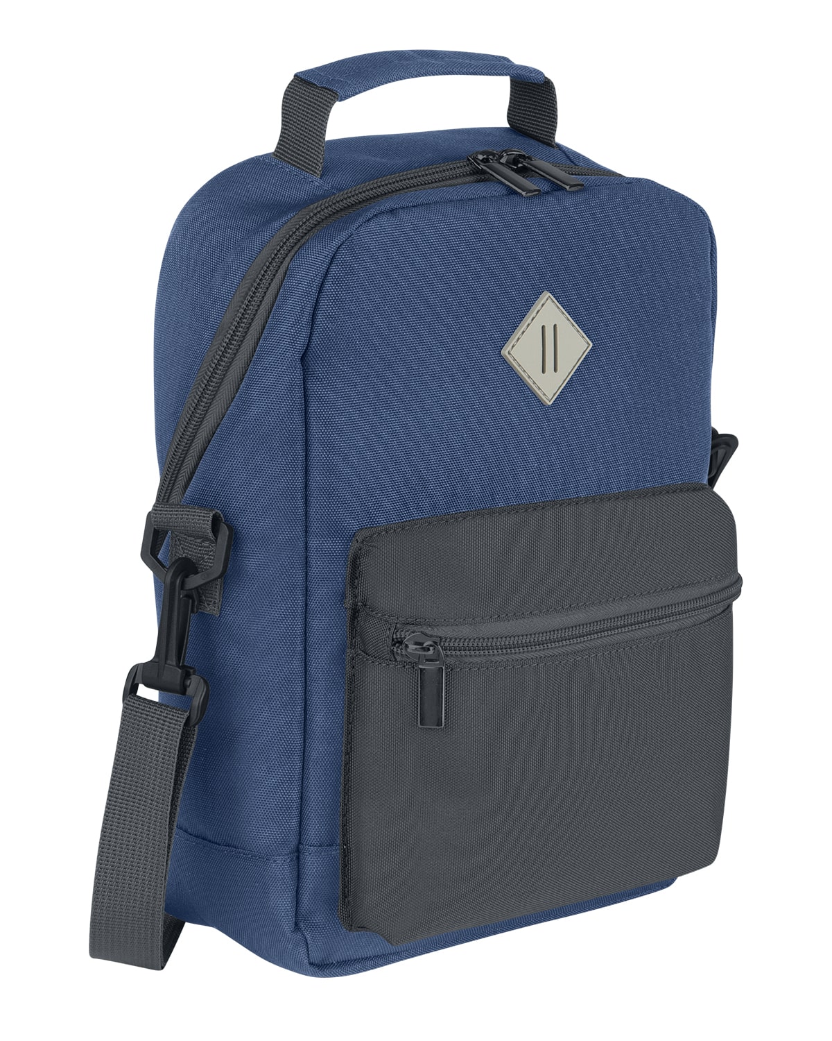 600D Recycled Polyester cooler bag with PEVA lining. Looks like a mini backpack, works like a cooler bag. This stylish Essex addition blends fashion and function to keep your meals fresh and your look on point. Main zippered insulated compartment; front zippered pocket in contrasting gray color. Removable, adjustable shoulder strap. Reinforced grab handle and lash tab. Holds six standard sized cans. Recommended weight tolerance: 8 lbs. 39% of this item’s total composition is made from recycled materials, and the fabric itself contains 99% post-consumer recycled content. 7.5000″ W x 11.0000″ H x 3.5000″ D