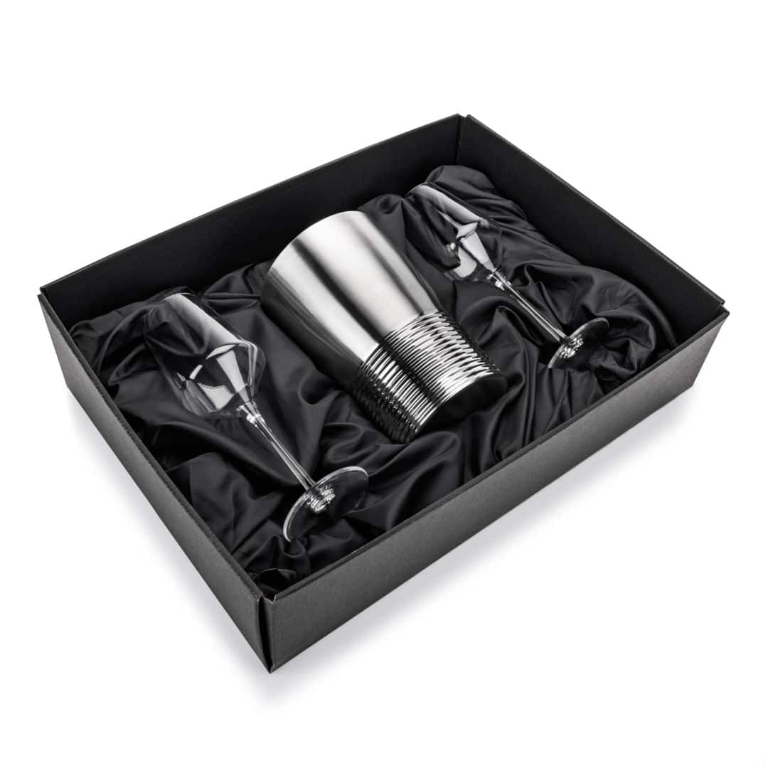 The Genoa Wine Cooler & Wine Glass Set brings a sleek, contemporary touch to any gathering. The stainless steel Genoa wine cooler keeps bottles perfectly chilled with its smooth, polished finish and modern ribbed design, while the crystal-clear wine glasses enhance every pour. Perfect for entertaining, gifting, or everyday enjoyment, this set combines style, quality, and functionality in one elegant presentation. Various wine glass styles are available.