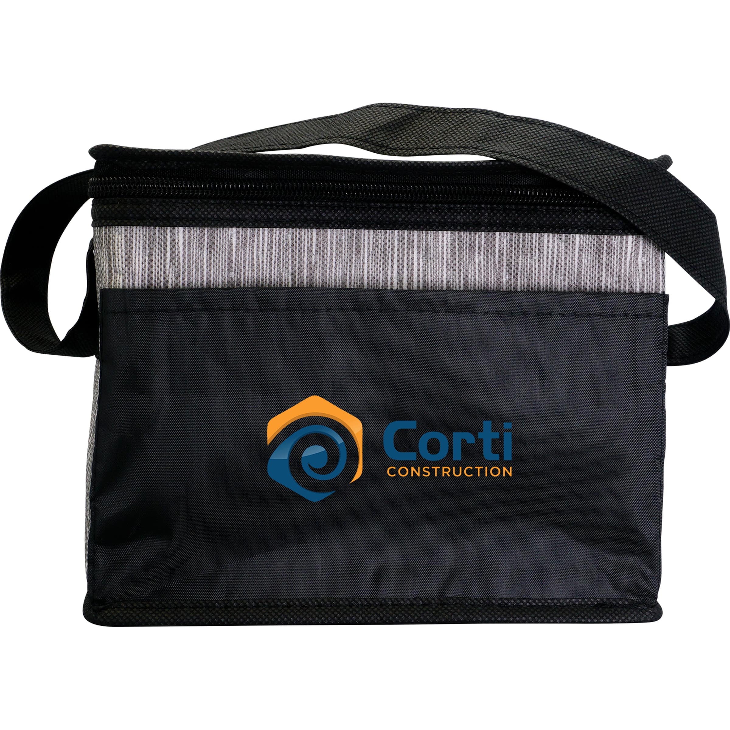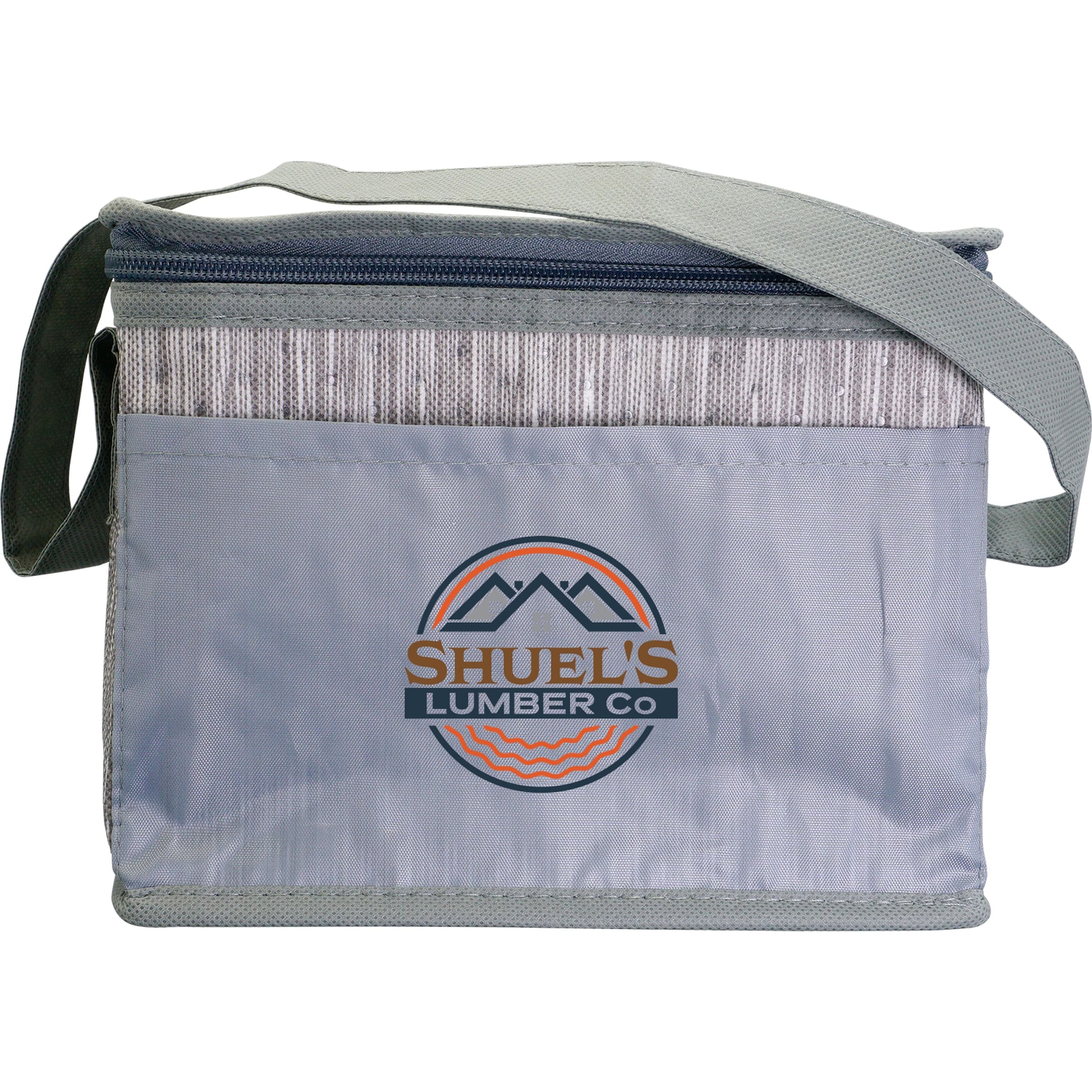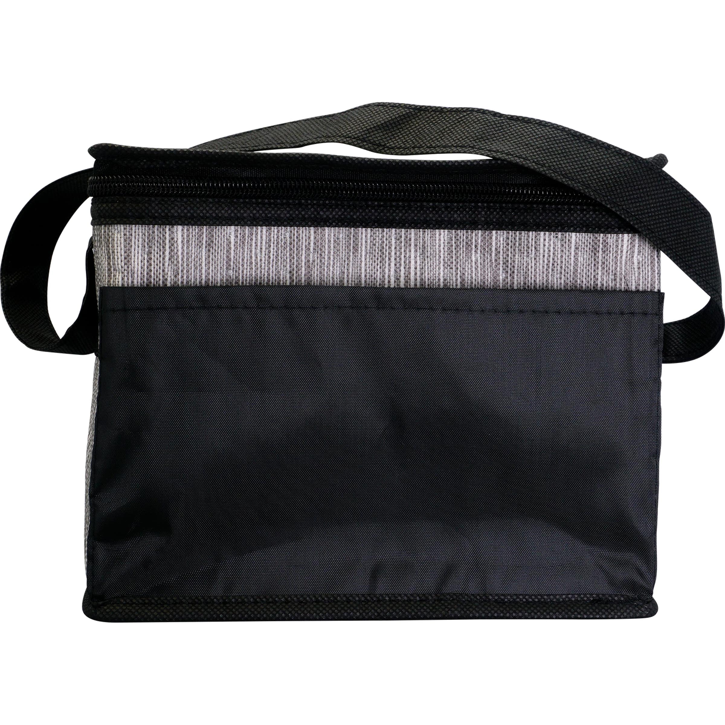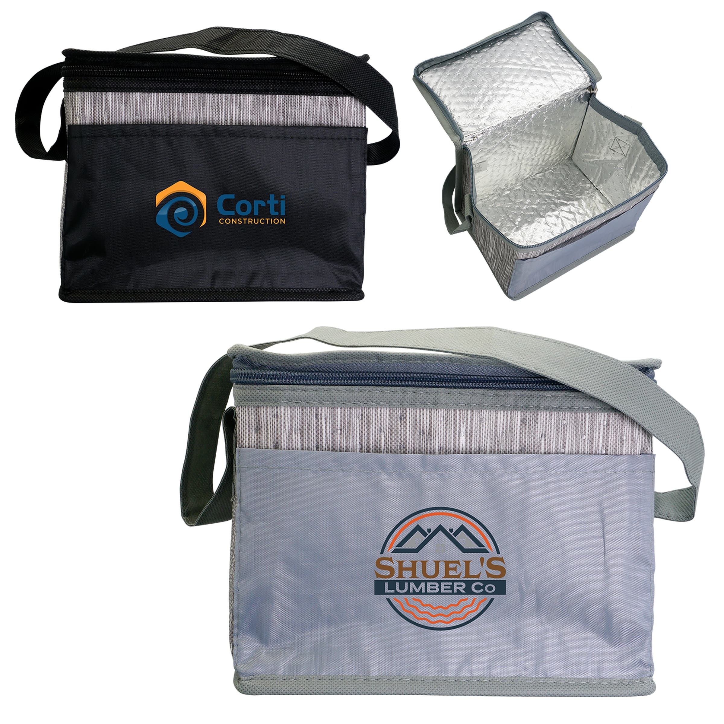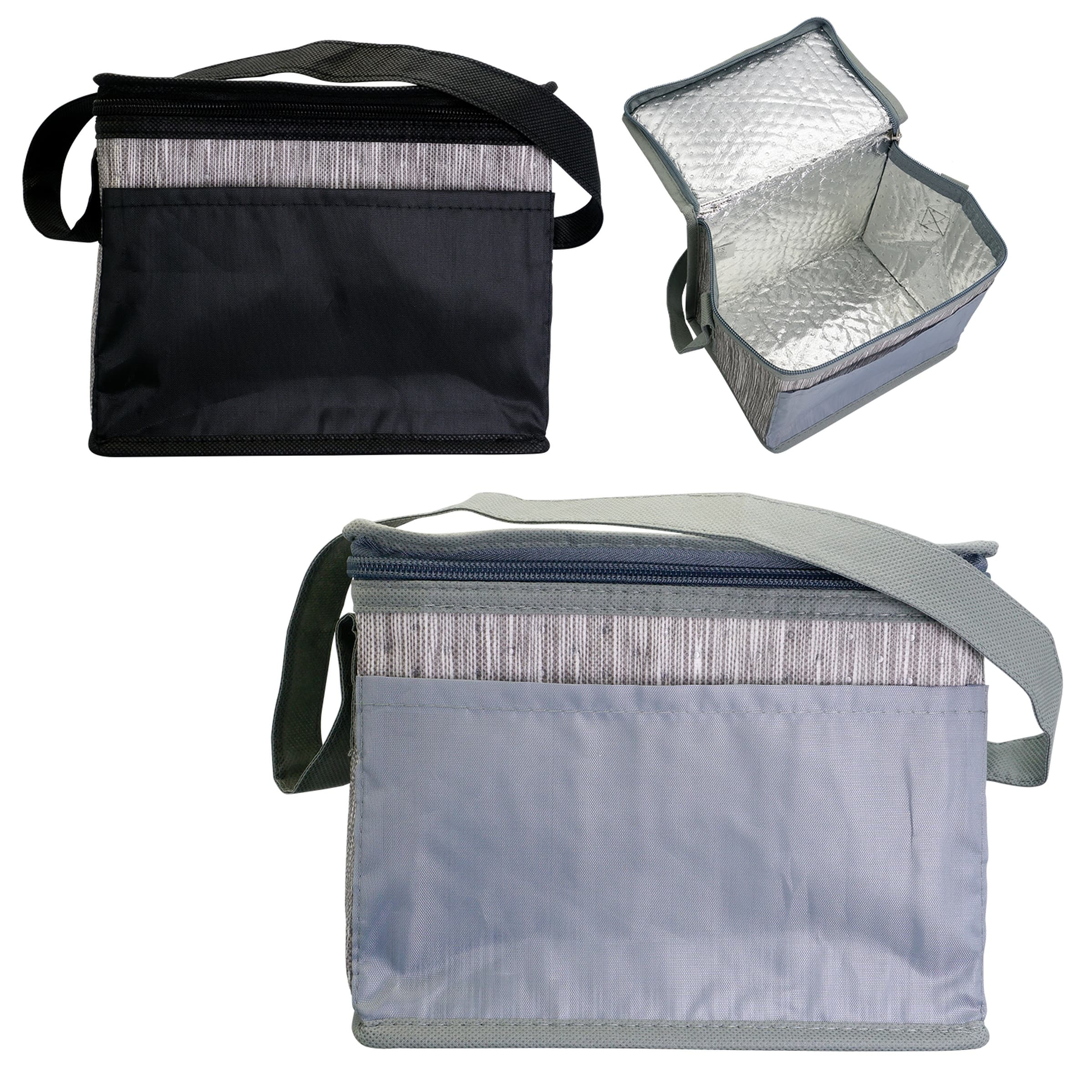 Introducing our premium insulated cooler featuring a convenient zippered closure, spacious full-top opening, front pocket for added storage, and a comfortable shoulder strap for easy carrying. This high-quality cooler is designed to hold up to 6 standard 12 oz. cans, keeping your beverages cool and refreshing for hours. Perfect for picnics, beach trips, tailgating, or any outdoor adventure. Stay stylish and organized with our versatile and practical insulated cooler. Complies with Prop 65. 8″ L x 7″ H x 6″ W
