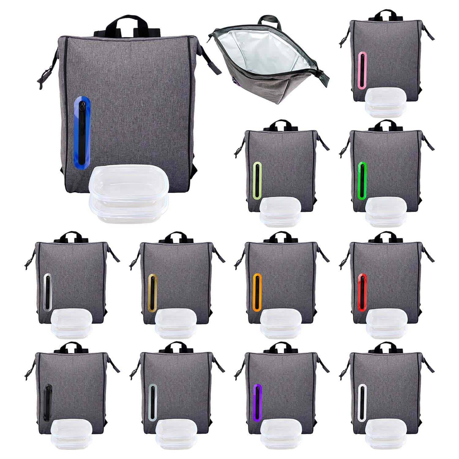 Introducing the stylish Oval Line Lunch Cooler, complete with vibrant accents to add a pop of color to your lunchtime routine. This cooler not only looks great, but it also comes equipped with two convenient food storage containers, proudly made in the USA. Keep your meals fresh and organized in this sleek and practical lunch cooler, perfect for on-the-go lifestyles. Complies with FDA, Prop 65. 16″ L x 16″ H x 5.5″ W