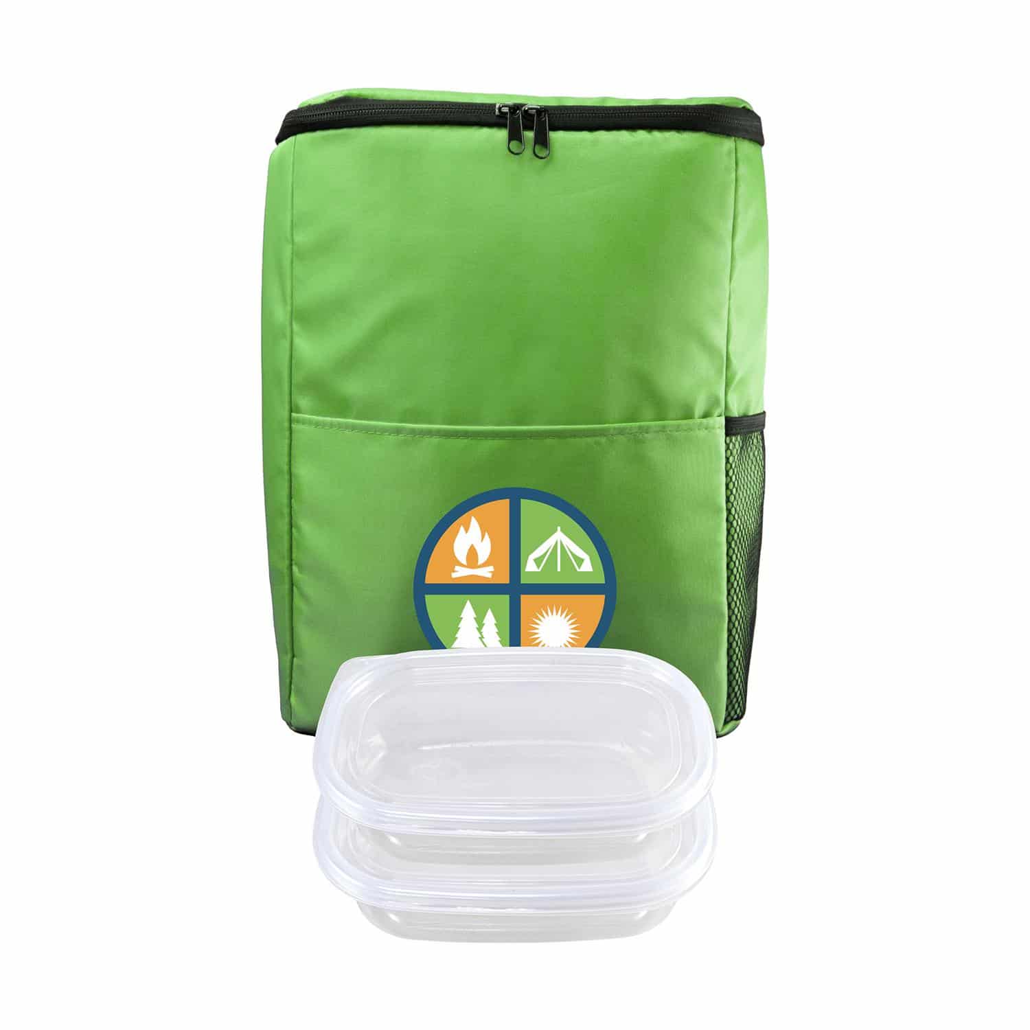 Introducing the sleek and versatile Sporty Recycled Cooler Backpack, featuring adjustable straps for the perfect fit. This innovative backpack comes equipped with two convenient food storage containers, proudly made in the USA. Stay organized and stylish on-the-go with this eco-friendly solution for all your snacking needs. Complies with FDA, Prop 65. 10″ L x 13″ H x 5.75″ W