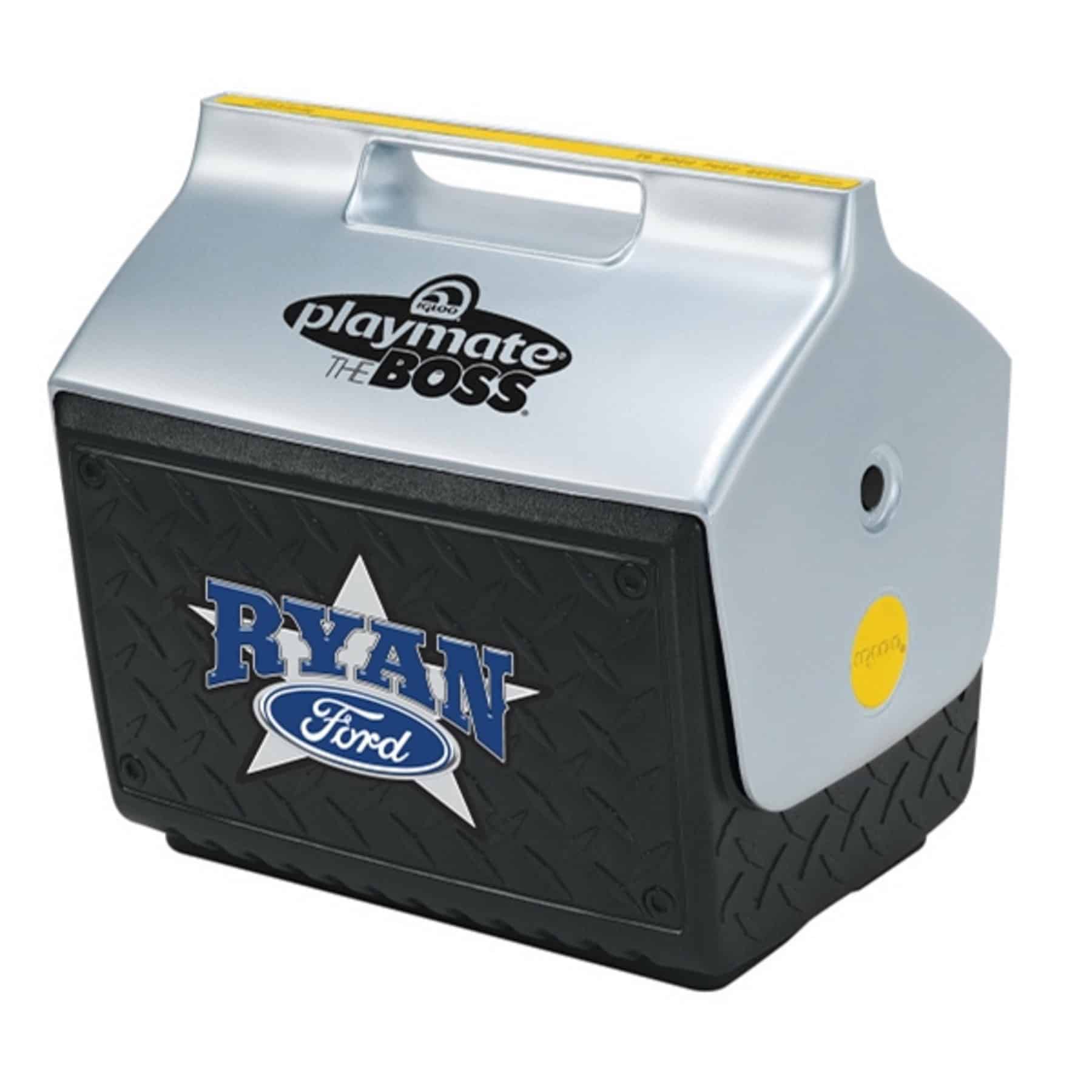 Where can I get Igloo® Playmate The Boss 14 Qt. Cooler (Black/Yellow/Gray) customized with my logo?