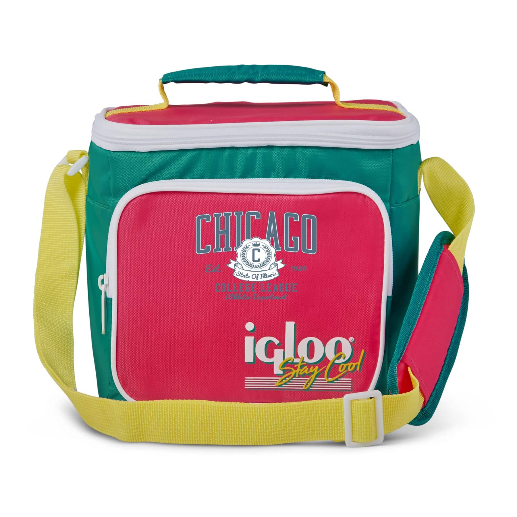 Custom Igloo® Retro Square Lunch Bag (Dark Jade & Magenta & Livewire Yellow) with Logo