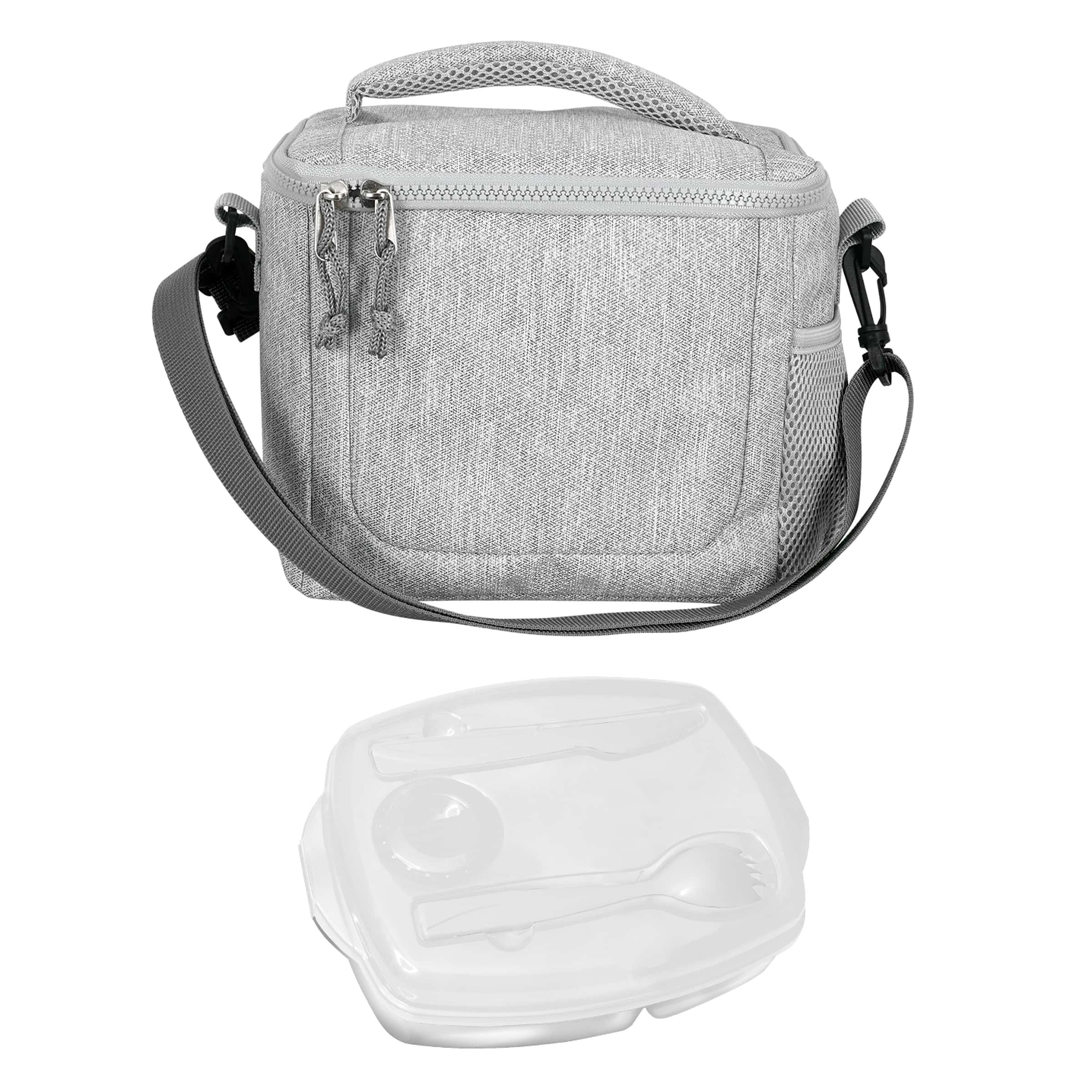 Introducing the Adventure Line Cooler, featuring a vibrant and colorful shoulder strap for added style and convenience. This cooler is designed with a locking lid lunch tray that includes three separate compartments and comes complete with durable plastic utensils. Stay organized and stylish on-the-go with this versatile and practical cooler. Complies with FDA, Prop 65. 8.5″ L x 7.25″ H x 6.25″ H