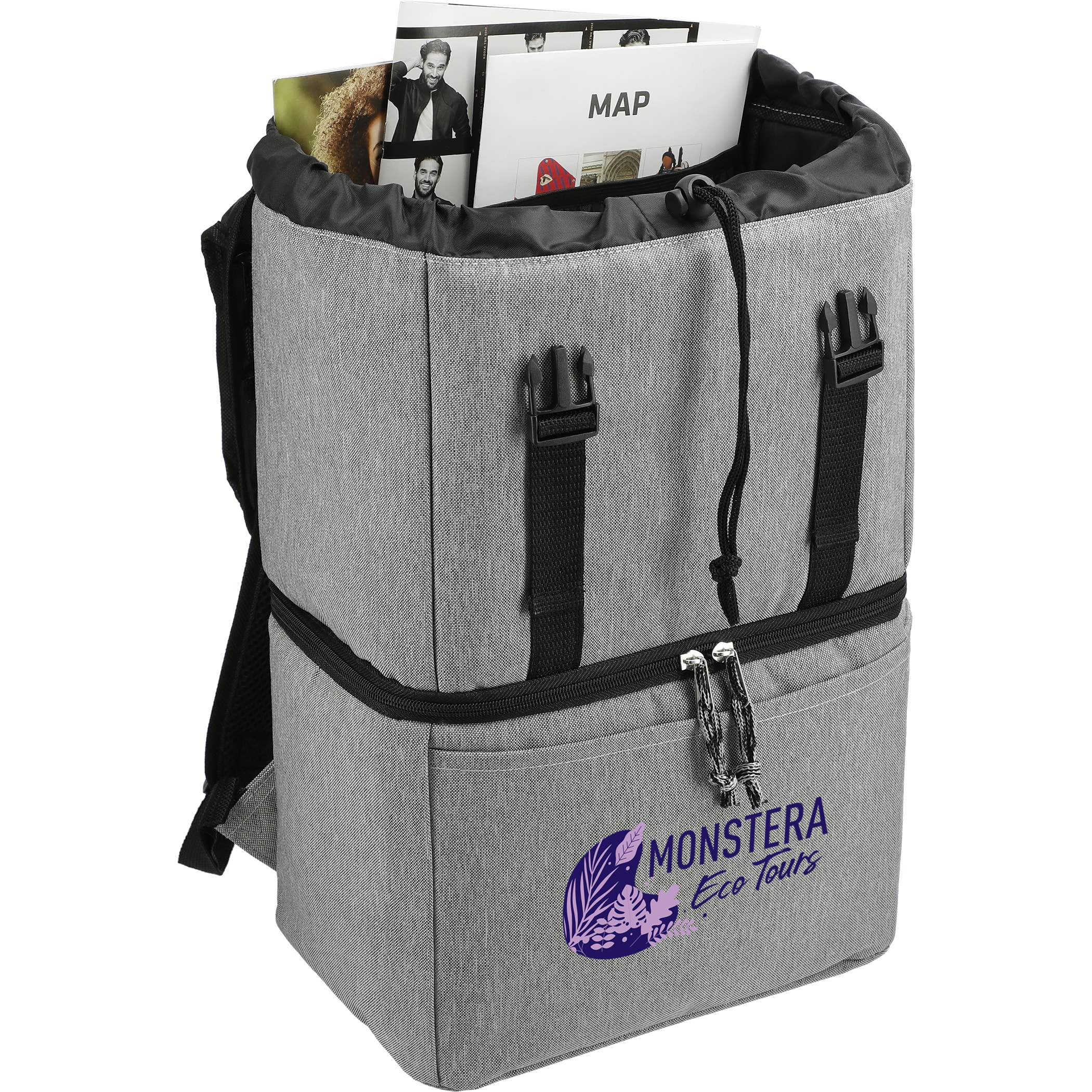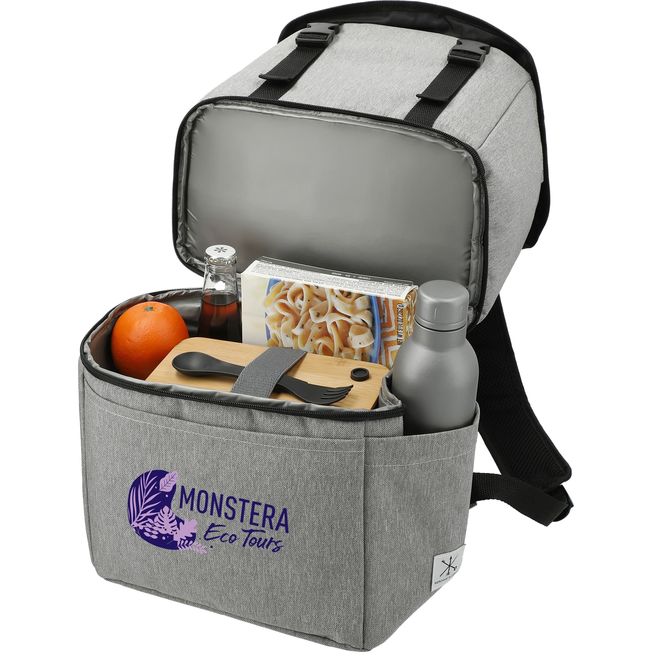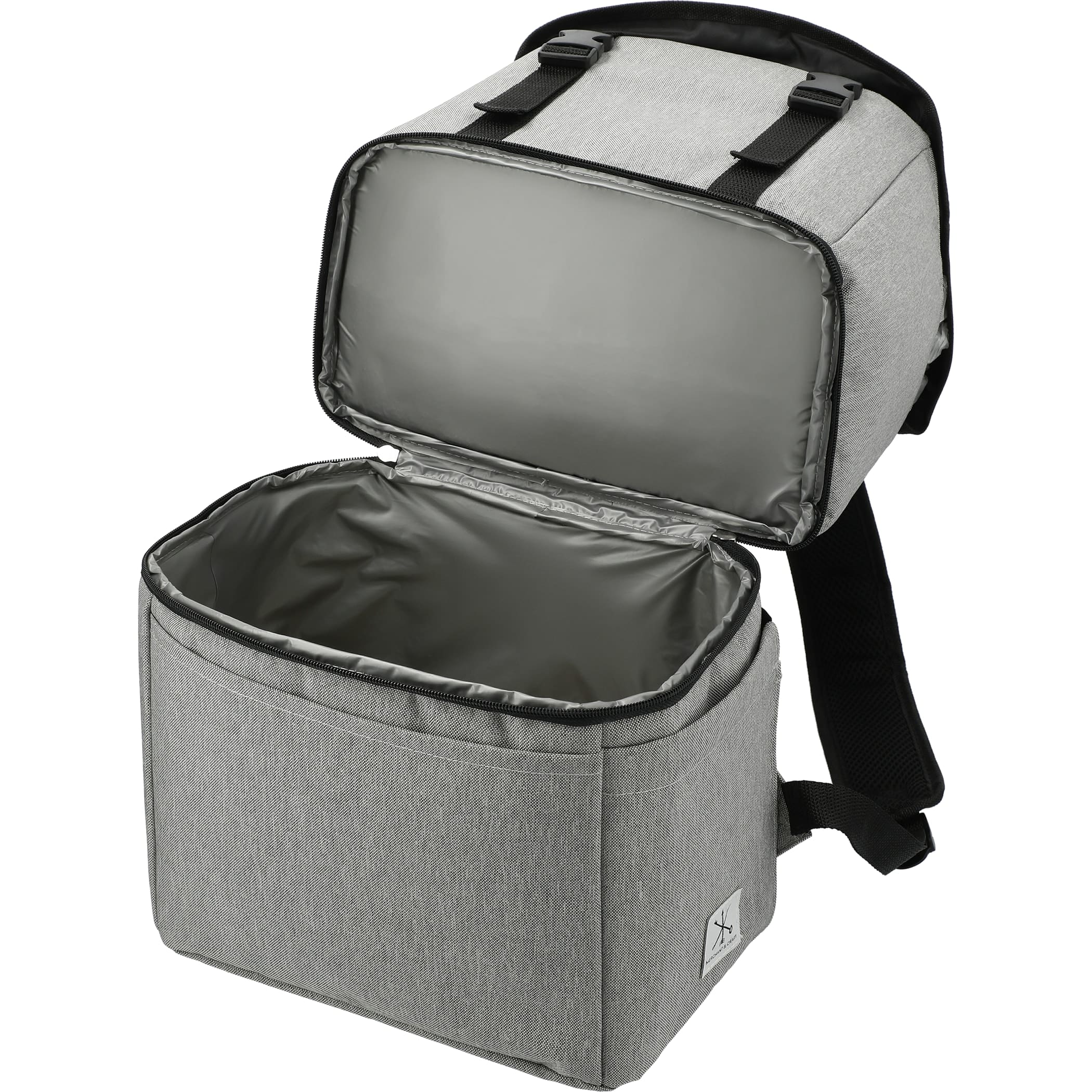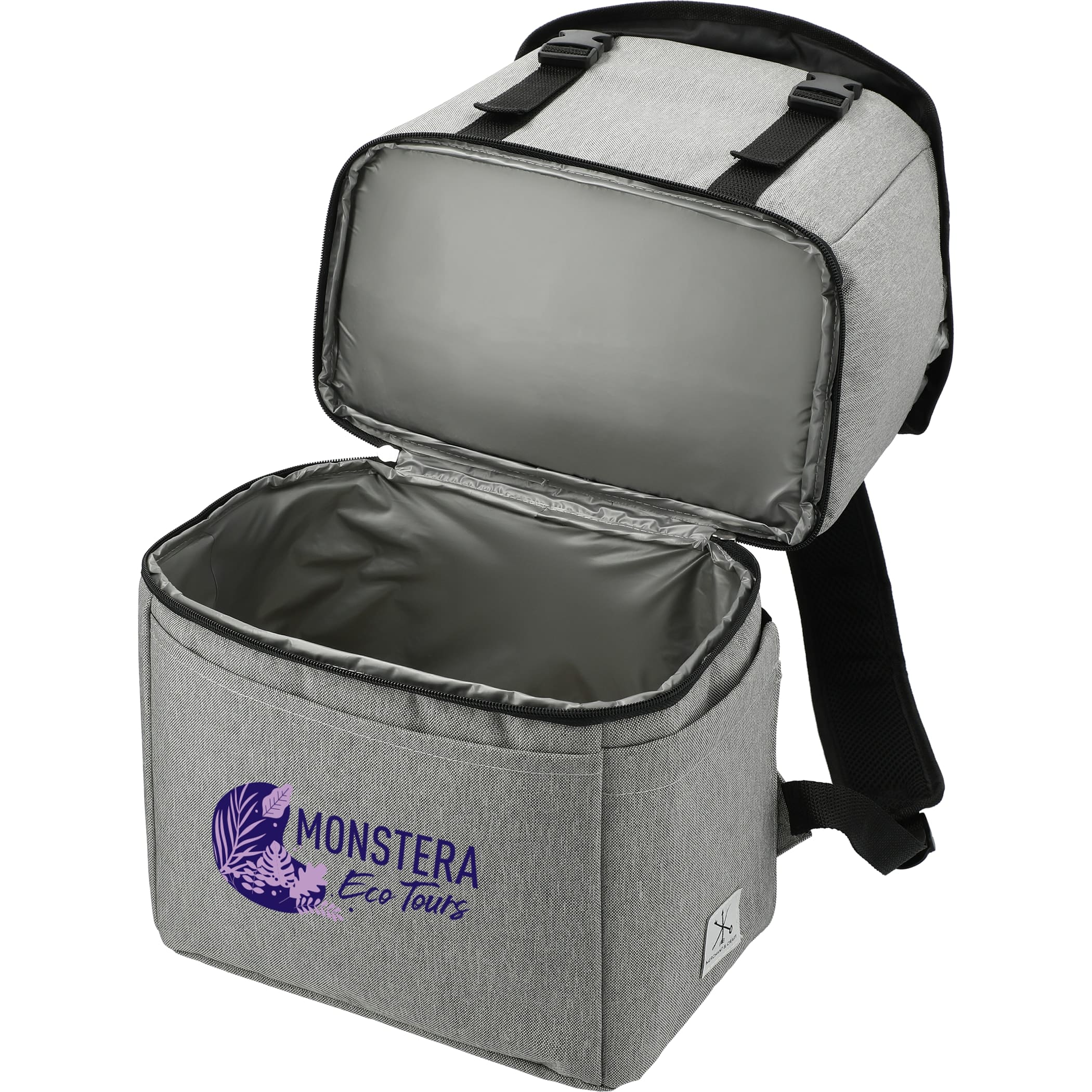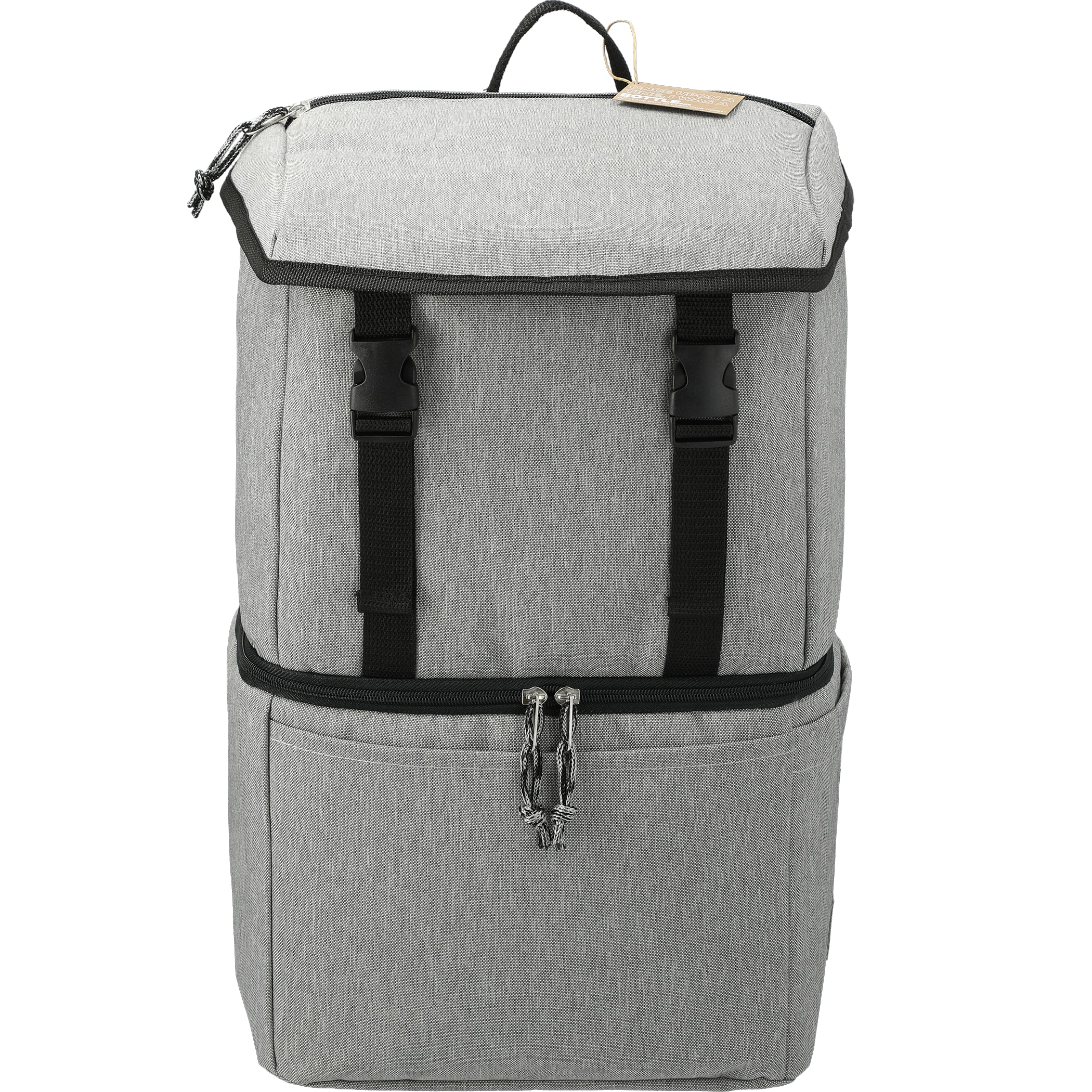 Merchant & Craft – simple classics for your modern lifestyle. The Merchant & Craft Revive rPET Backpack Cooler features RPET 600d main material made from recycled plastics such as water bottles. The top section is designed to hold dry items and is not insulated. The lower section is insulated for lunches or beverages. PEVA lining. Easily identify your cooler with the interior ID label. Through a partnership with 1% For The Planet, one percent of sales of EcoSmart products will be donated to nonprofits dedicated to protecting the planet. Note: PEVA lining, webbing handle and webbing trim are not made with recycled materials. 6.50″ D x 11.00″ W x 16.00″ H