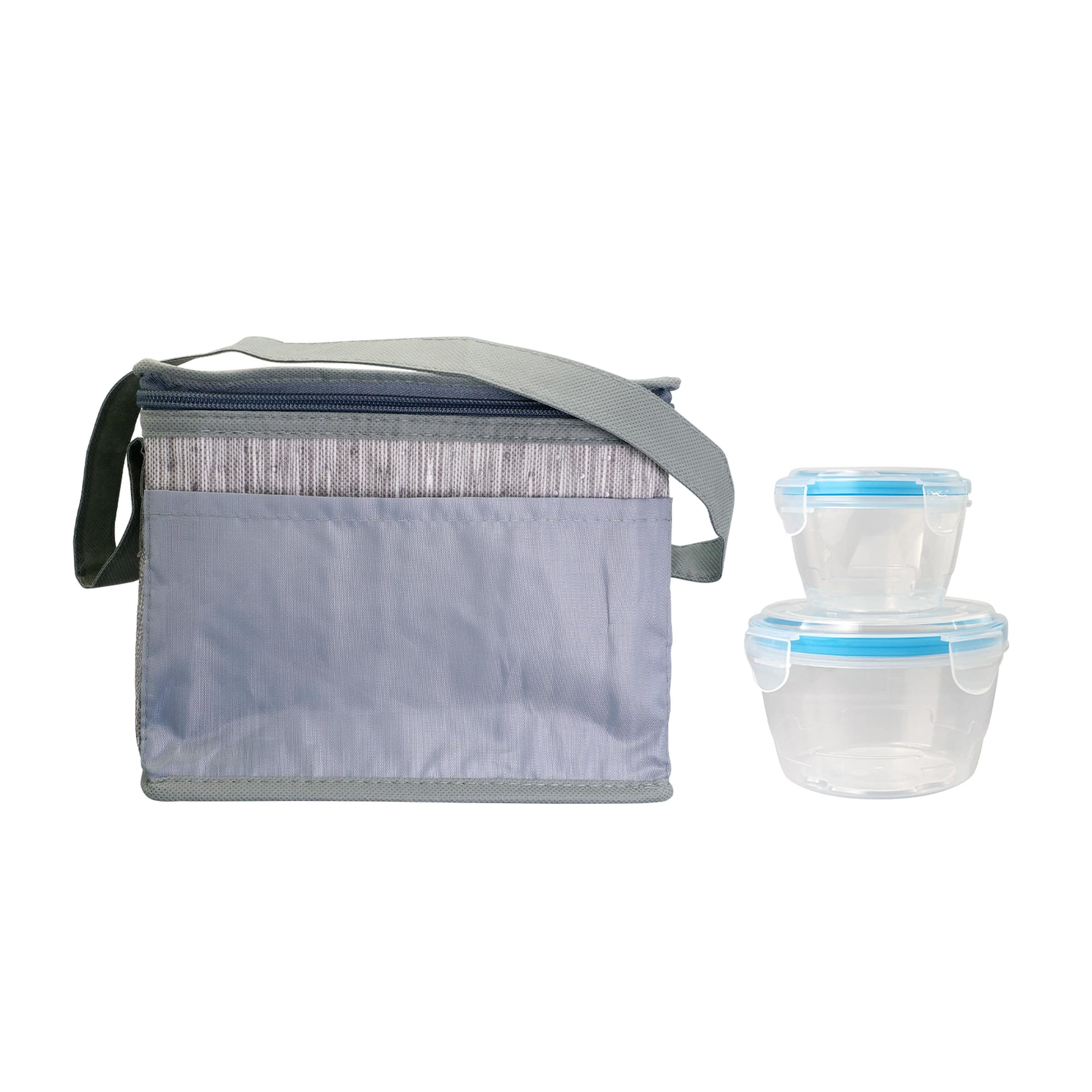 The sleek Gray Graph Cooler Bag features a convenient full top opening for easy access. Complete with a Nesting Locking Lid Bowl Set, each bowl comes with vented lids for freshness and convenience. Complies with FDA, Prop 65. 8″ L x 7″ H x 6″ W