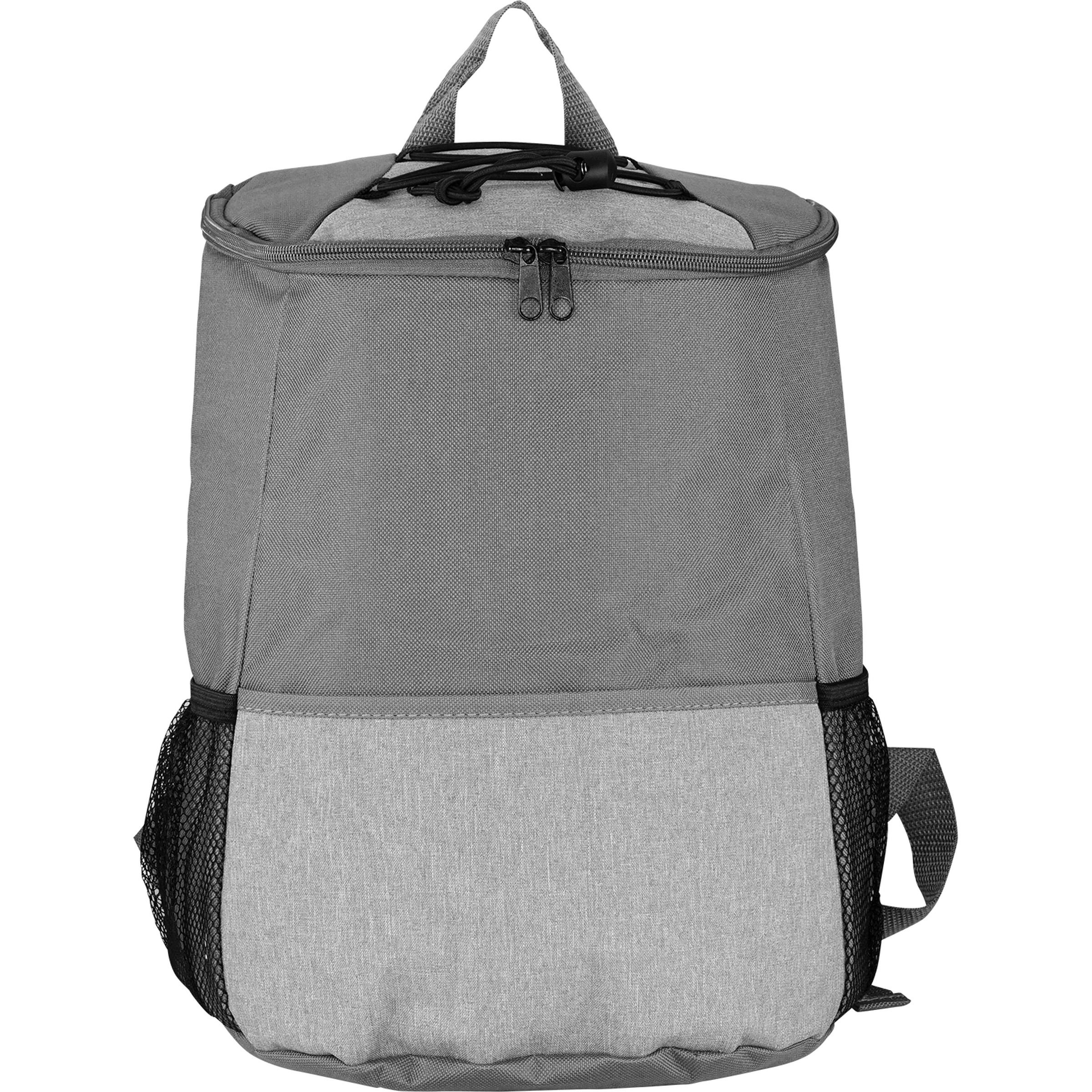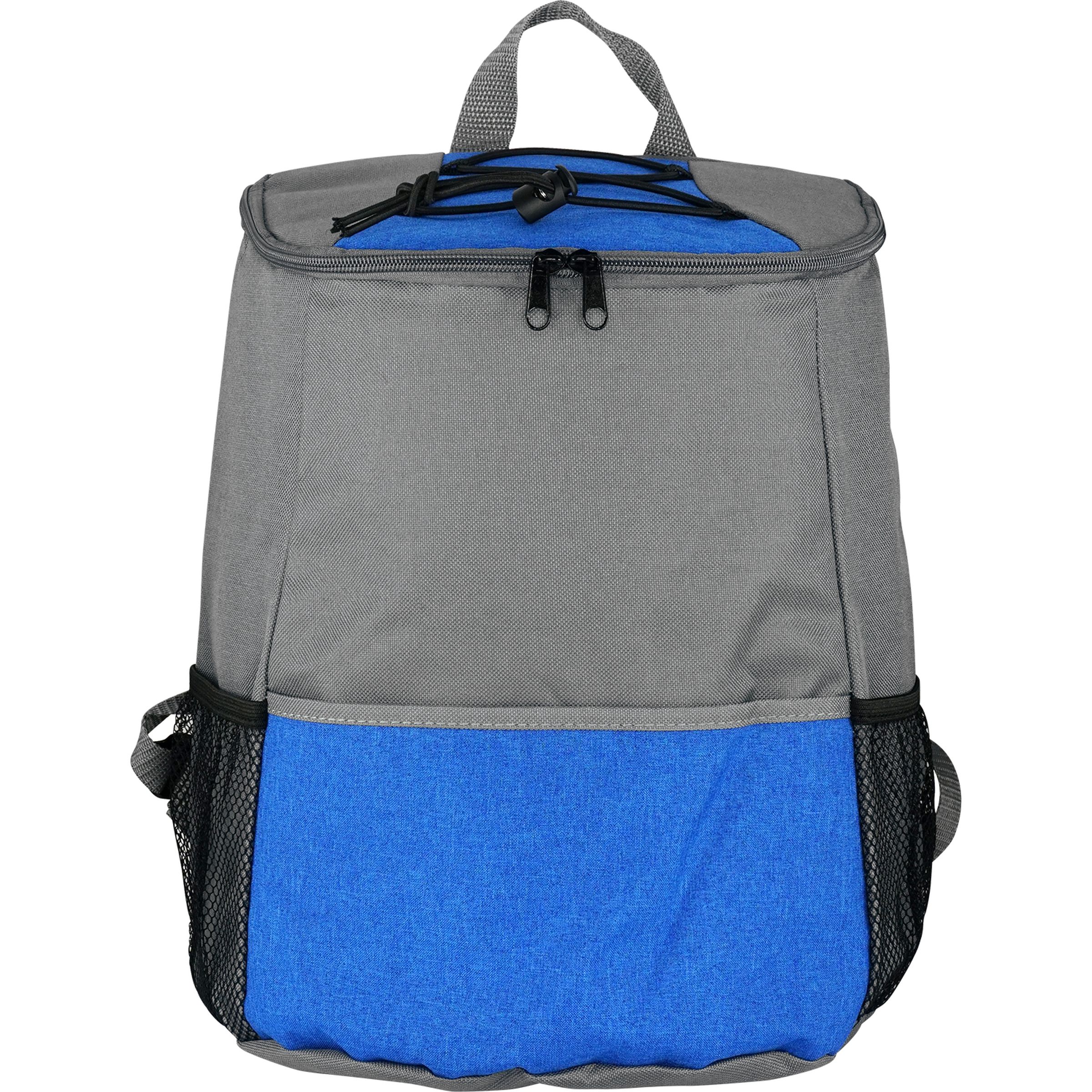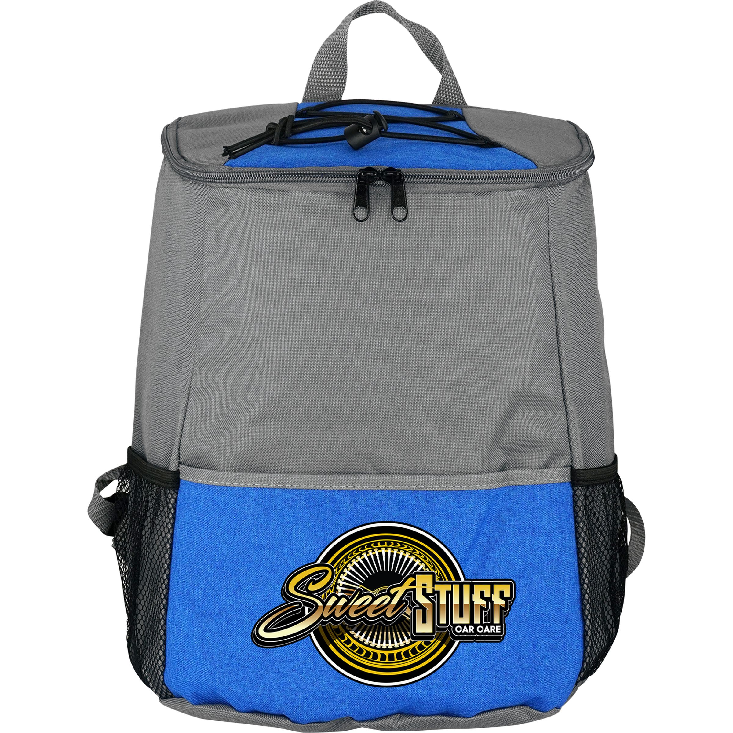 Elevate your outdoor experience with our premium insulated cooler backpack, featuring a convenient zippered full top opening for easy access. This backpack is designed with a spacious front pocket and two mesh pockets perfect for storing all your favorite snacks. The wide straps are carefully crafted for comfortable carrying, making it ideal for any adventure. With the capacity to hold 12-14 cans, you’ll never have to worry about running out of refreshments while on the go. Stay cool and organized with our insulated zippered cooler backpack. Complies with Prop 65. 9″ L x 12″ H x 7″ W