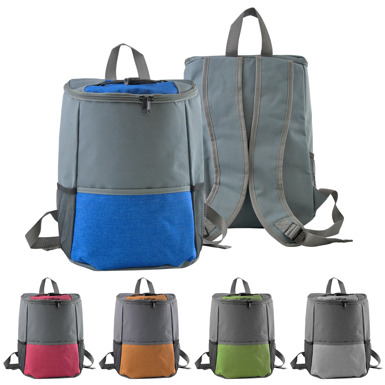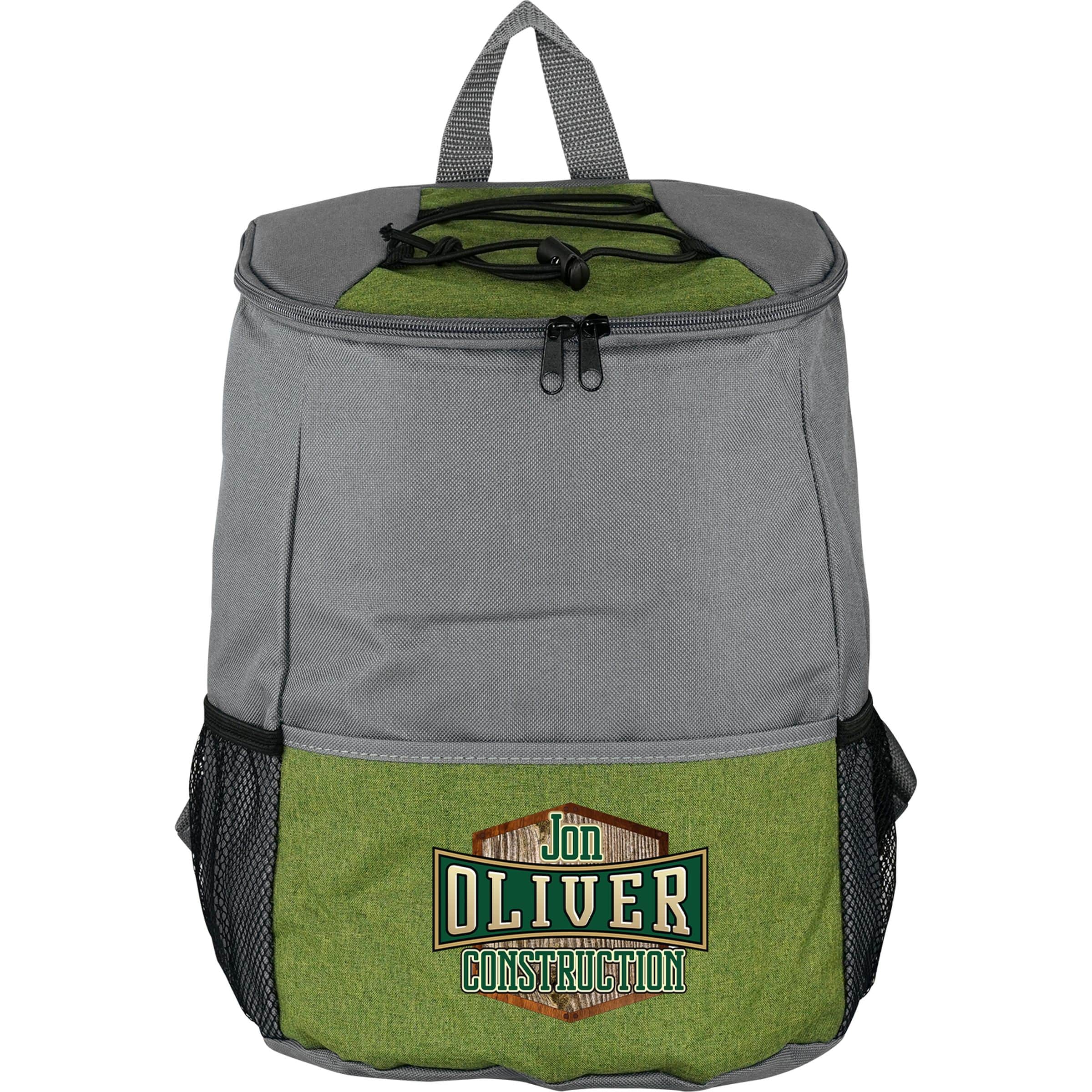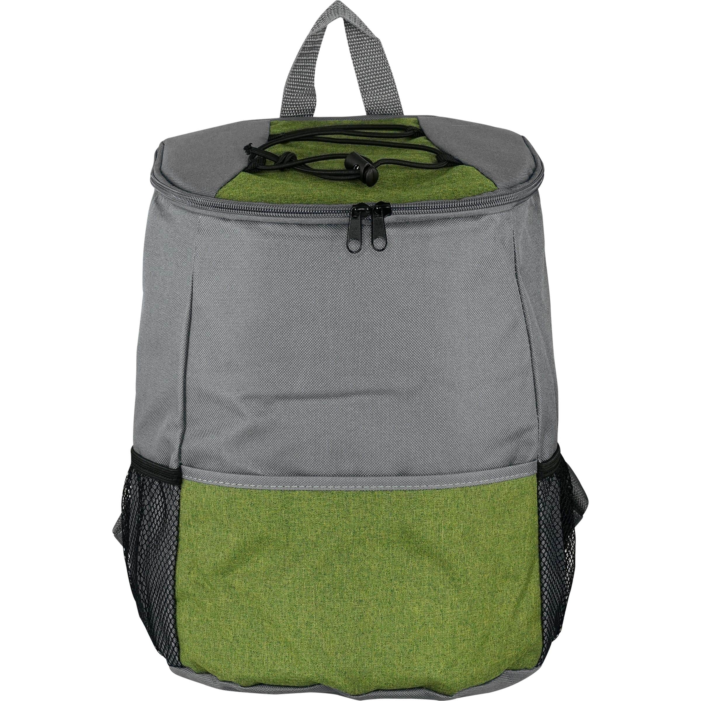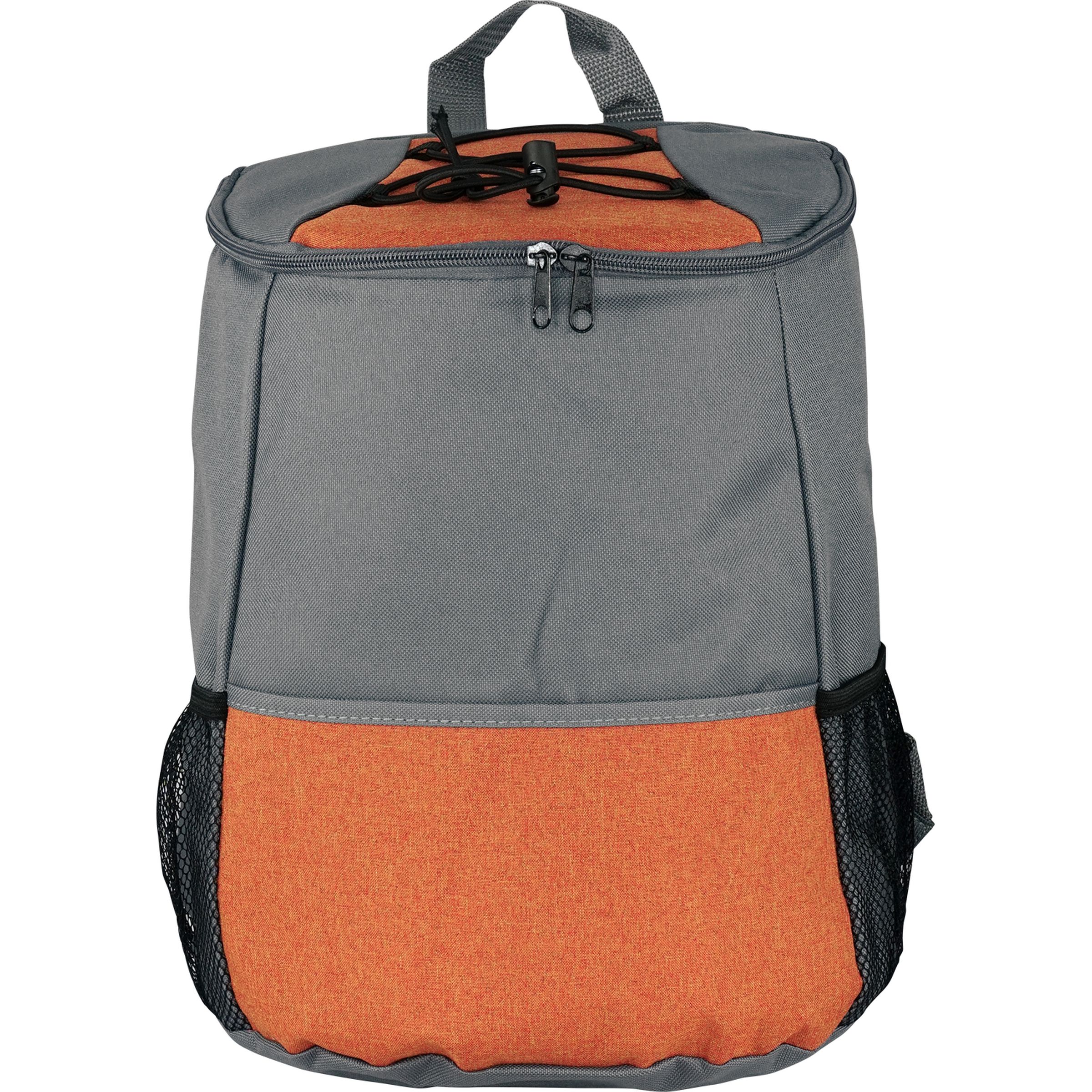 Elevate your outdoor experience with our premium insulated cooler backpack, featuring a convenient zippered full top opening for easy access. This backpack is designed with a spacious front pocket and two mesh pockets perfect for storing all your favorite snacks. The wide straps are carefully crafted for comfortable carrying, making it ideal for any adventure. With the capacity to hold 12-14 cans, you’ll never have to worry about running out of refreshments while on the go. Stay cool and organized with our insulated zippered cooler backpack. Complies with Prop 65. 9″ L x 12″ H x 7″ W