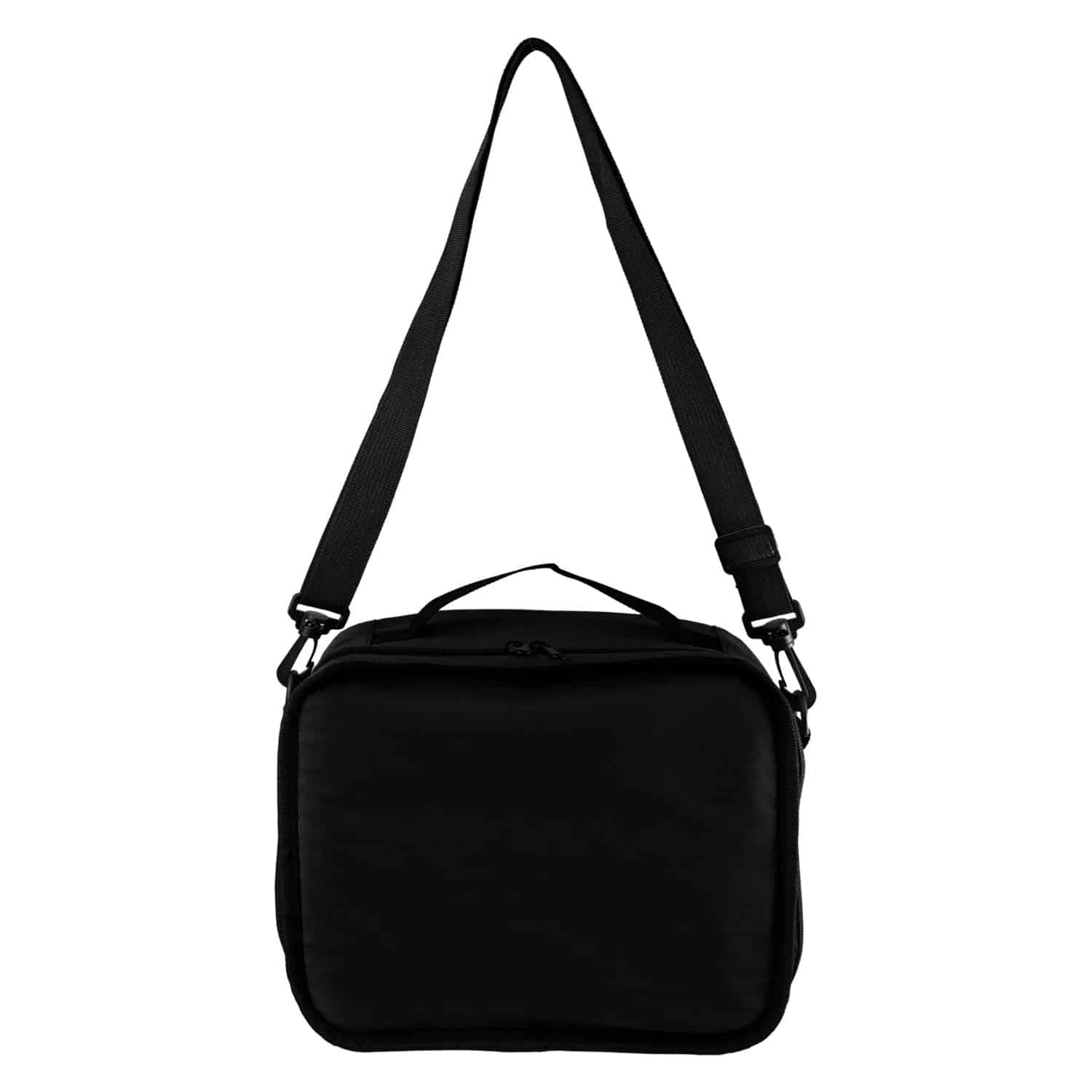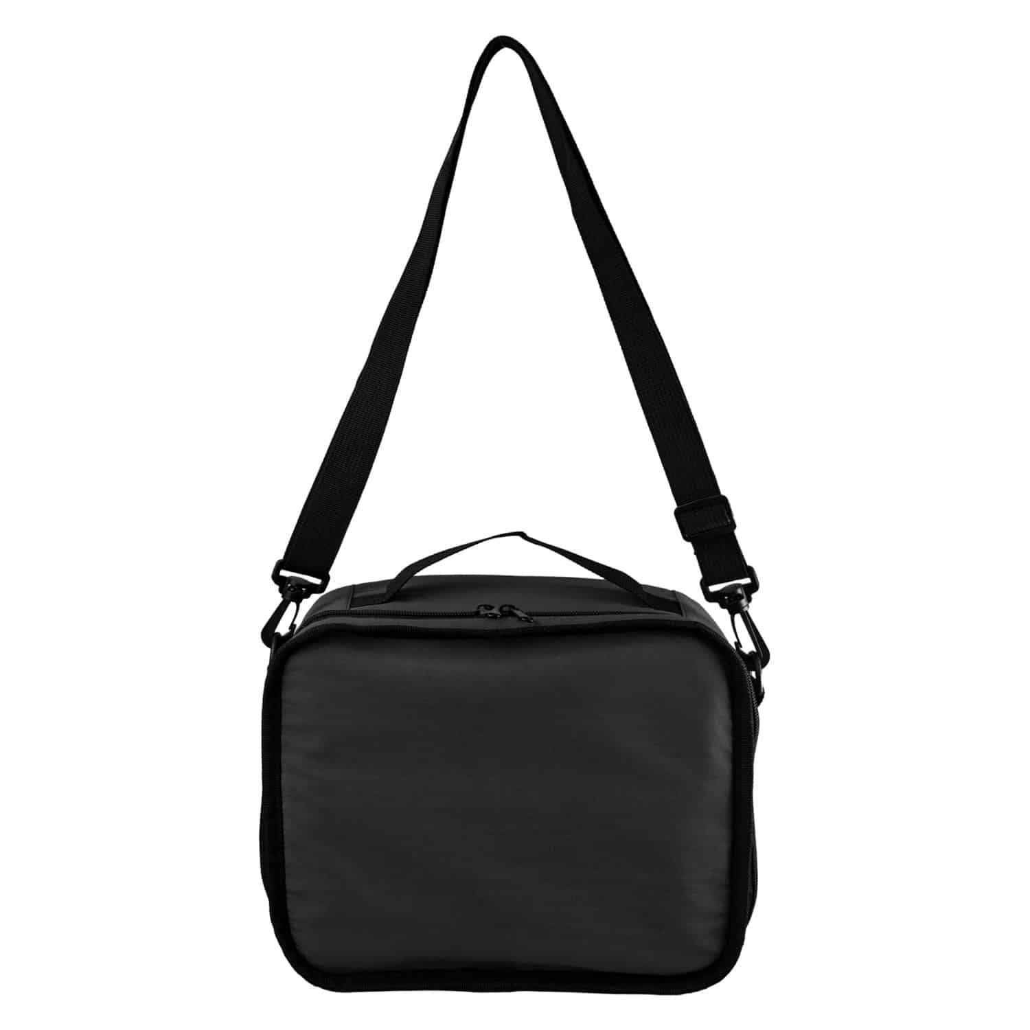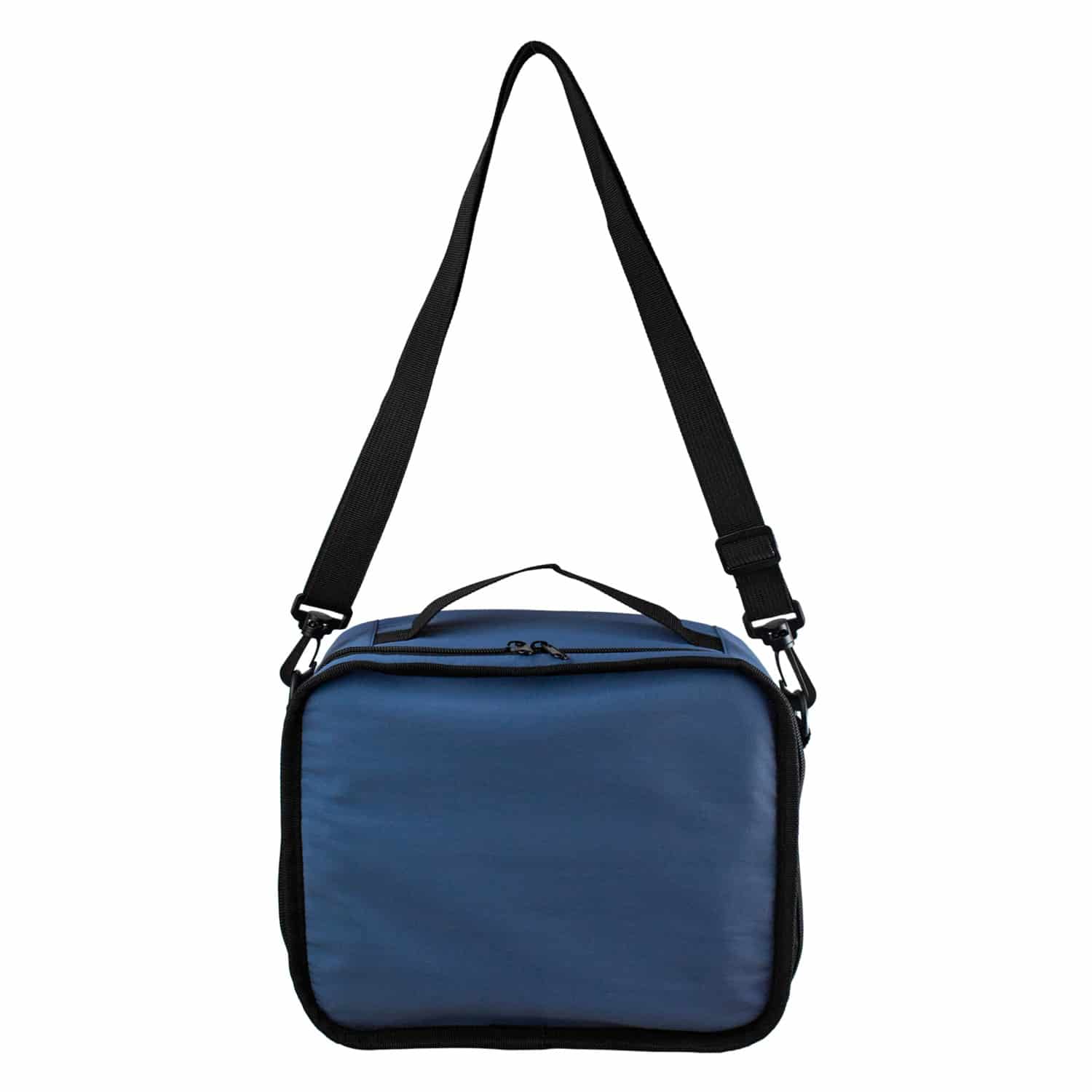 Eco-friendly insulated cooler with a zippered closure, perfect for keeping your food and drinks cool on the go. Crafted from recycled nylon, this cooler is not only practical but also environmentally conscious. Features a convenient top handle for easy carrying and a removable shoulder strap for hands-free transportation. Stay stylish and sustainable with this recycled insulated cooler. Complies with Prop 65. 11″ L x 8.75″ H x 4.75″ W