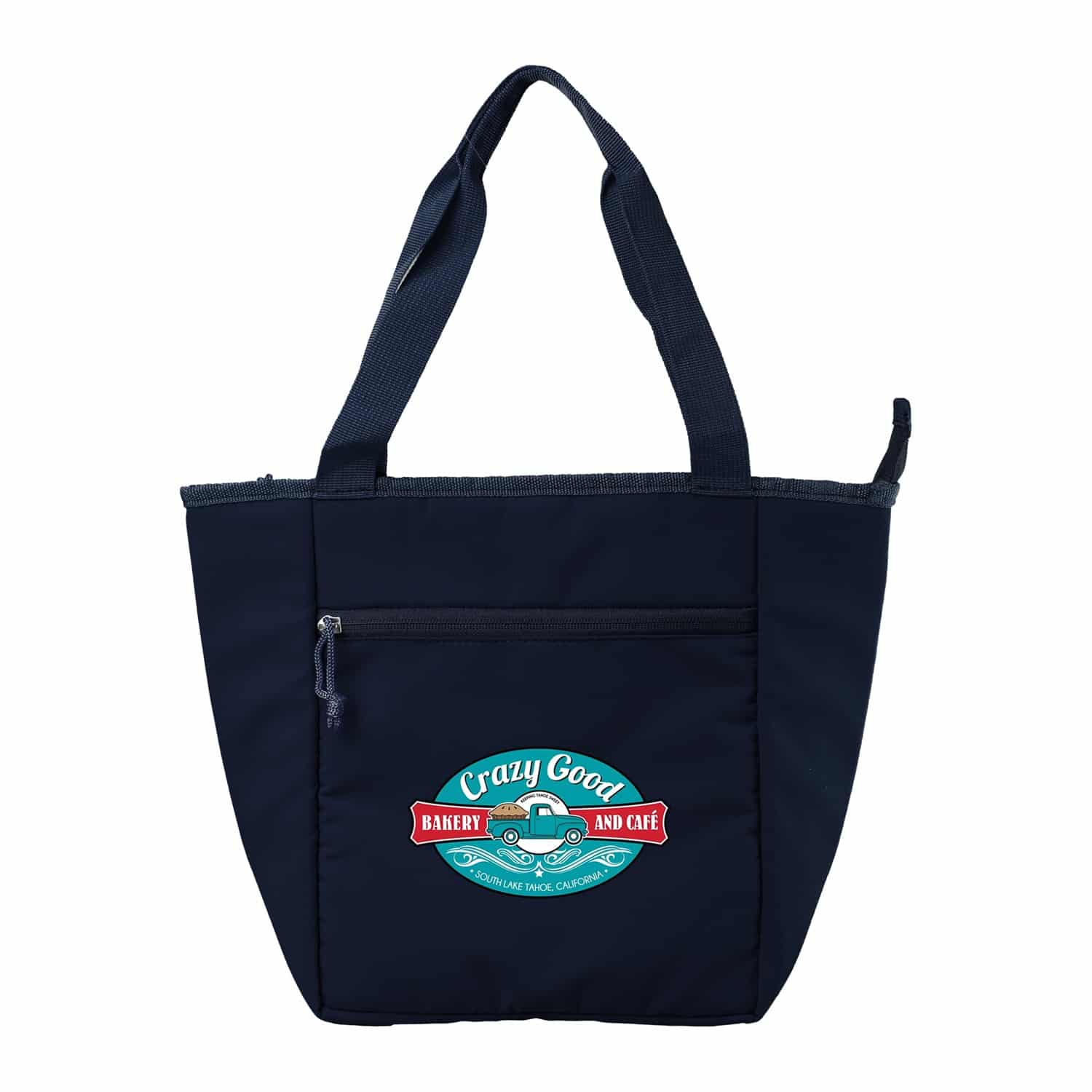 Stay cool and eco-friendly with our recycled insulated zippered cooler bag, crafted from recycled nylon materials. This innovative bag not only keeps your food and drinks at the perfect temperature, but it also helps reduce waste and protect the environment. The front zippered pocket is perfect for storing snacks or your phone, making it convenient for all your on-the-go needs. Choose sustainability without sacrificing style with our recycled insulated cooler bag. 9″ L x 11″ H x 6″ W