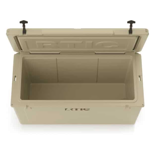 A large, durable cooler built for rugged trips and longer journeys. Up to 2.65″ of closed-cell foam insulation and a freezer-style gasket lock in the cold for up to 9 days when following RTIC’s® Cooling Tips. Use the heavy-duty rope handles to take the 145 QT anywhere and when you need an extra hand—this cooler doubles as a step stool, or tabletop. The combination of durable rubber T-latches and molded tie-down slots will keep your food and beverages safe and secure. Rotomolded construction makes it tough enough to handle every excursion—from fishing trips to weekends in the desert. Capacity: 195 Cans. Weight 91 lbs. 41.75″ L x 19.75″ W x 21″ H