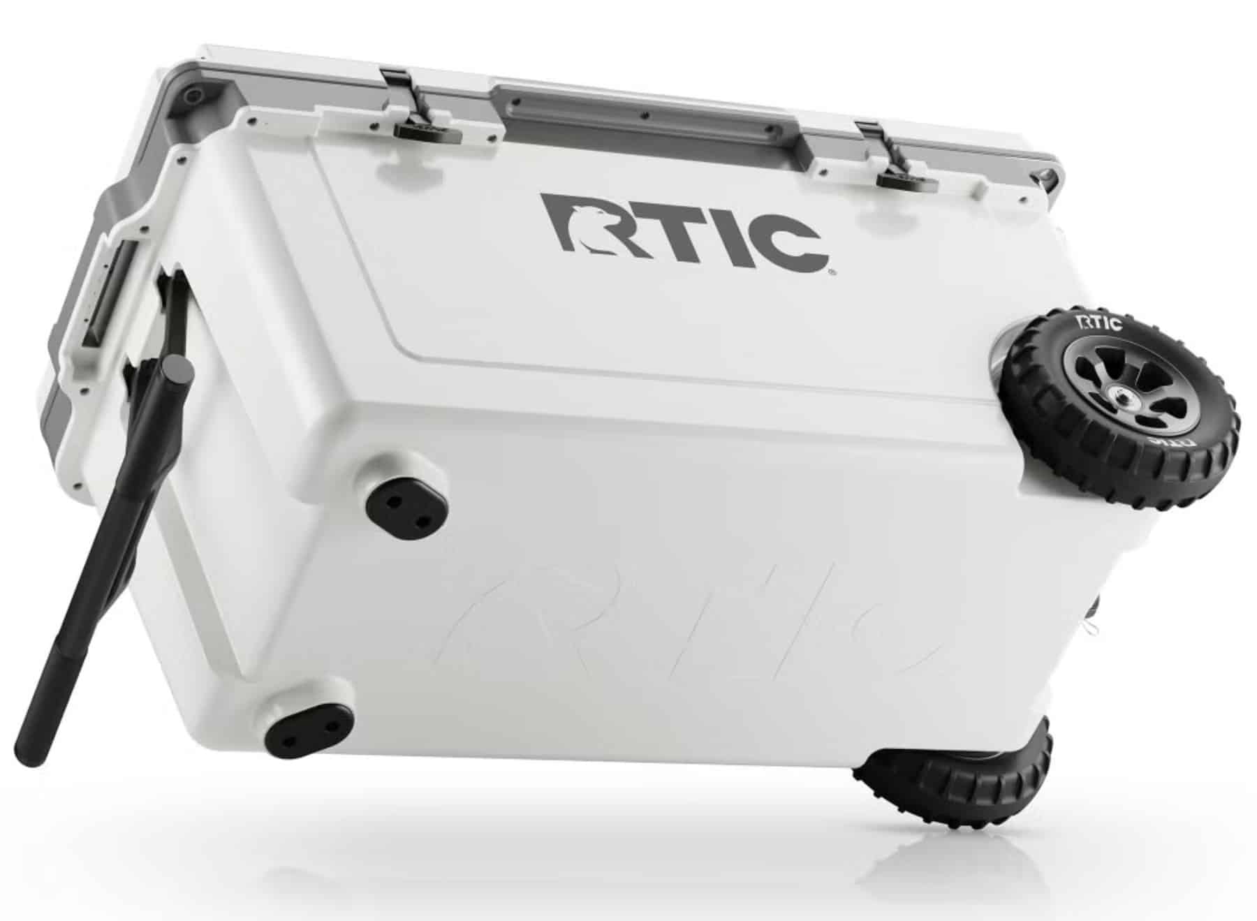 The 72 QT Ultra-Light Wheeled Cooler is expertly designed to fit more, so you can refill less. The interior is compatible with two RTIC’s Cooler Dividers and Baskets to help you keep your provisions organized. Up to 2.5? of closed cell foam insulation and a freezer-style gasket lock in the cold for up to 6 days and holds 96 cans. With ultra-strong tires and a patented reinforced suspension, our all-terrain, puncture-proof wheels will help you take this cooler anywhere with ease. They can handle mud, dry sand, stairs, rugged trails, and more without ever getting a flat tire. Engineered to be up to 30% lighter than wheeled rotomolded coolers of similar capacities. 36 3/4″ L x 18 1/4″ D x 18 1/2″ H