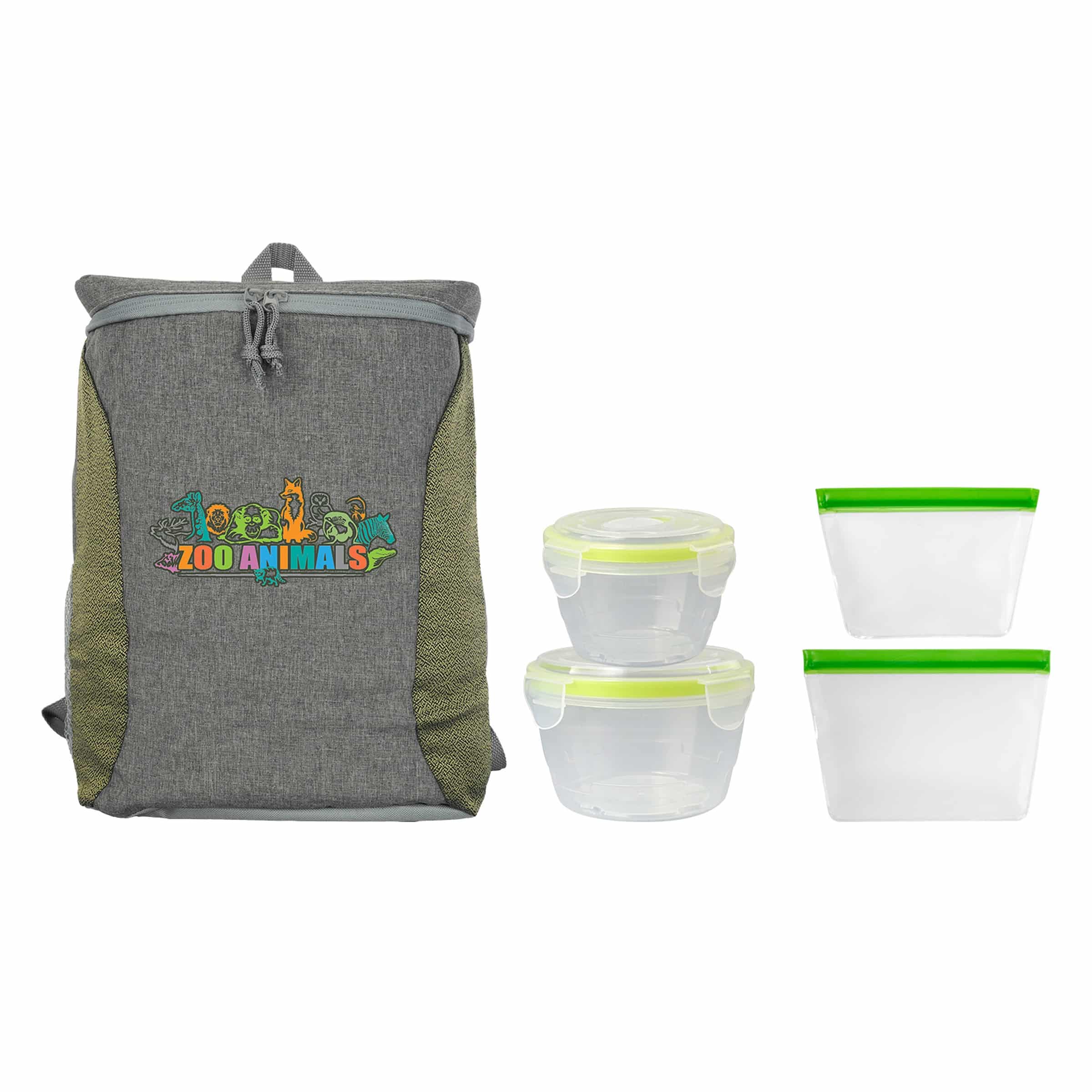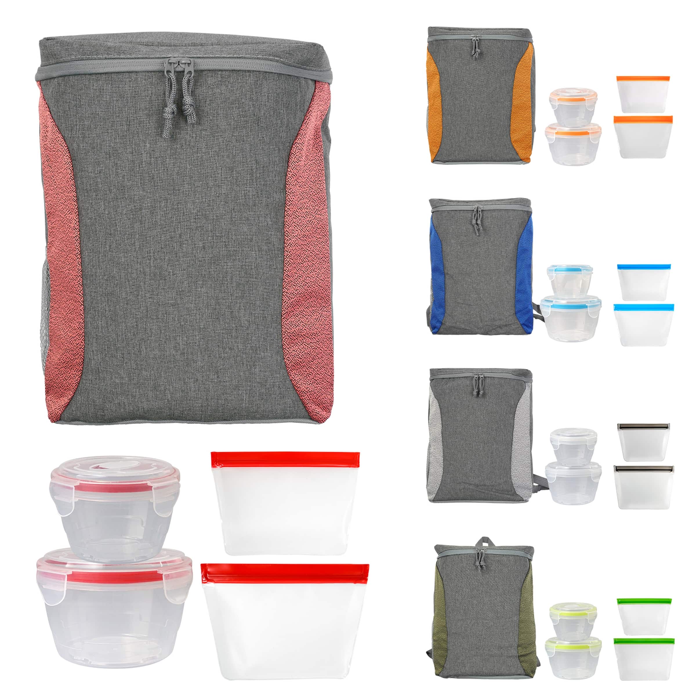 Introducing the versatile Speck Boomerang Cooler Backpack, featuring a convenient full-top opening for easy access. Elevate your food storage game with our Nesting Locking Lid Bowl Set, complete with vented lids for freshness. Keep your snacks and meals organized with our Medium and Large Reusable Food Storage Bags, both equipped with secure zip closures. Upgrade your on-the-go dining experience with these essential accessories. Complies with FDA, Prop 65. 9″ L x 12″ H x 7″ W