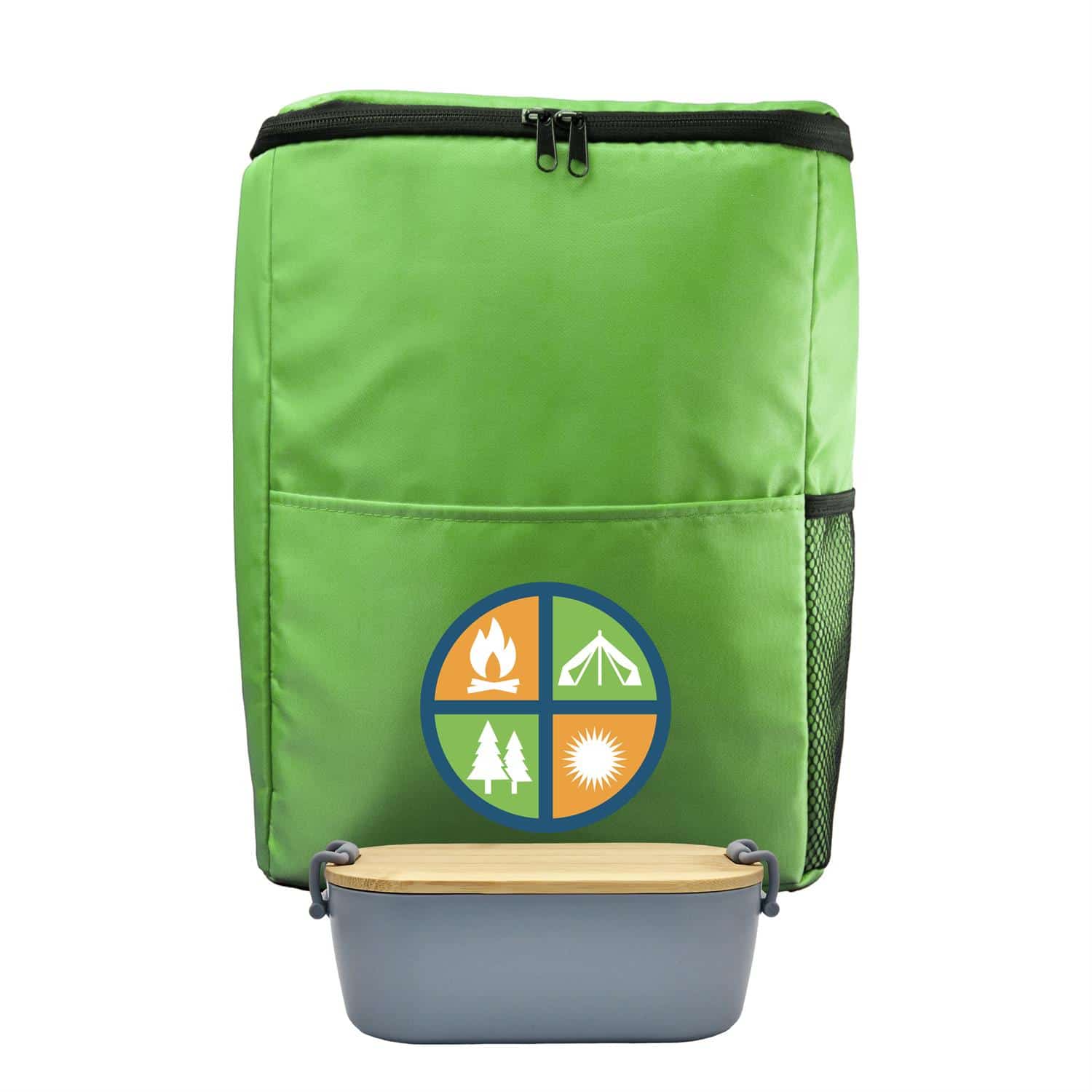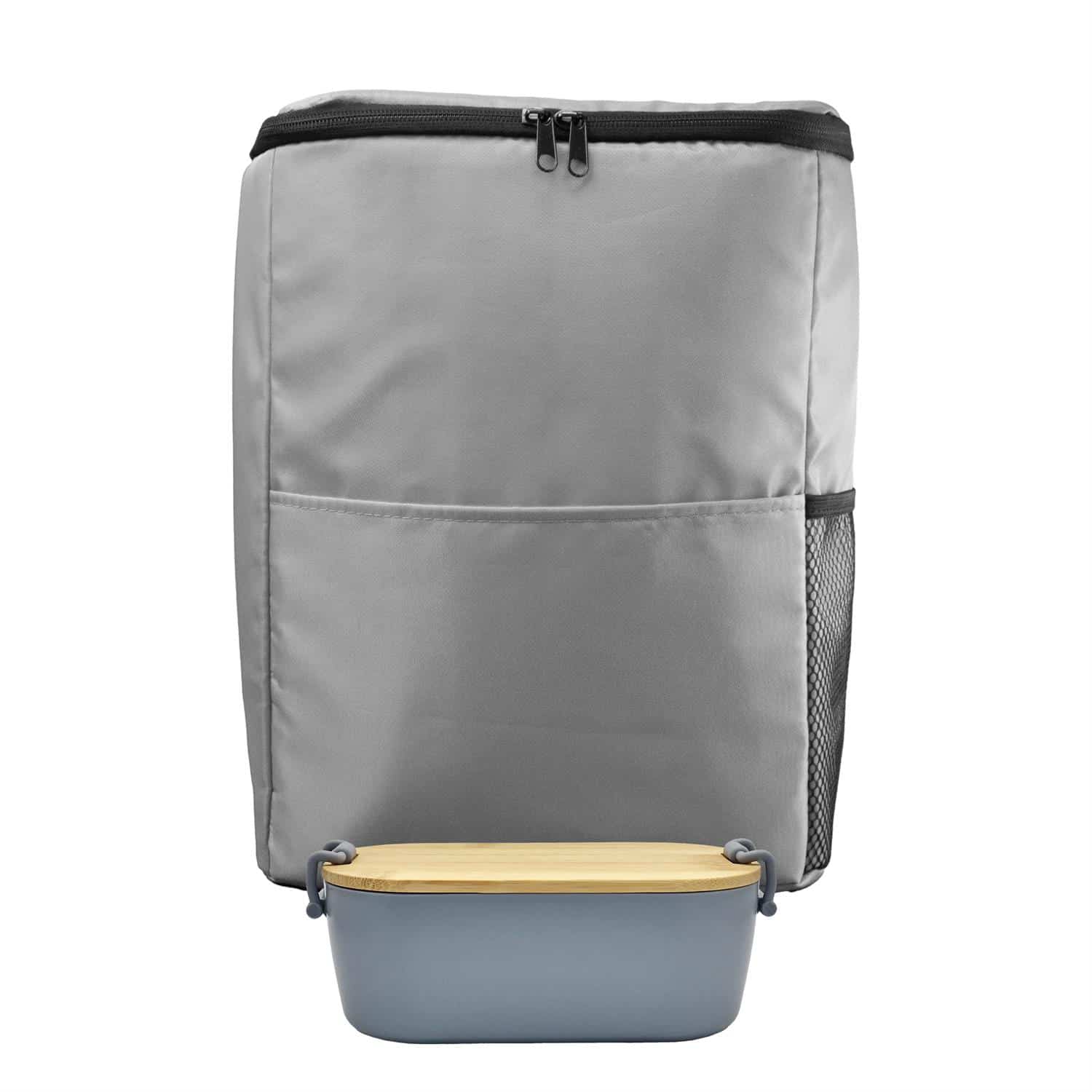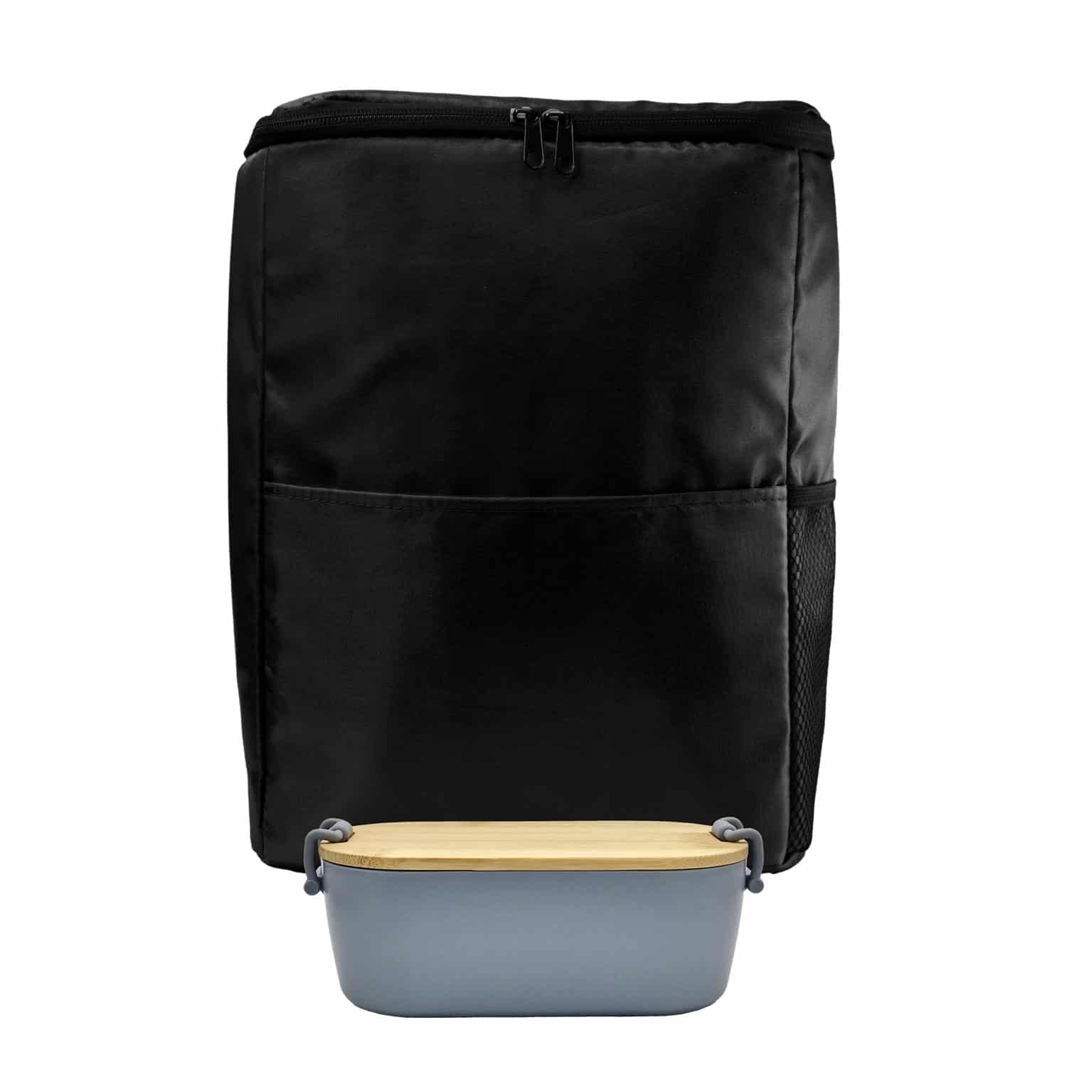 Introducing our stylish and eco-friendly Sporty Recycled Cooler Backpack, the perfect companion for all your outdoor adventures. This innovative backpack is not only functional but also sustainable, as it is made from recycled materials. Pair it with our Bamboo Lunch Box, featuring a lid made from FSC-certified bamboo. This sleek and modern lunch box is not only environmentally friendly but also durable and practical for everyday use. Say goodbye to single-use plastic containers and make a statement with our bamboo lunch box.Whether you’re heading to the beach, the park, or on a hike, our Sporty Recycled Cooler Backpack and Bamboo Lunch Box are the ideal combination for keeping your food and drinks fresh and organized. Make a positive impact on the environment while enjoying the convenience and style of our eco-friendly products. Choose sustainability without compromising on quality with our Sporty Recycled Cooler Backpack and Bamboo Lunch Box. Complies with FDA, Prop 65. 10″ L x 13″ H x 5.75″ W