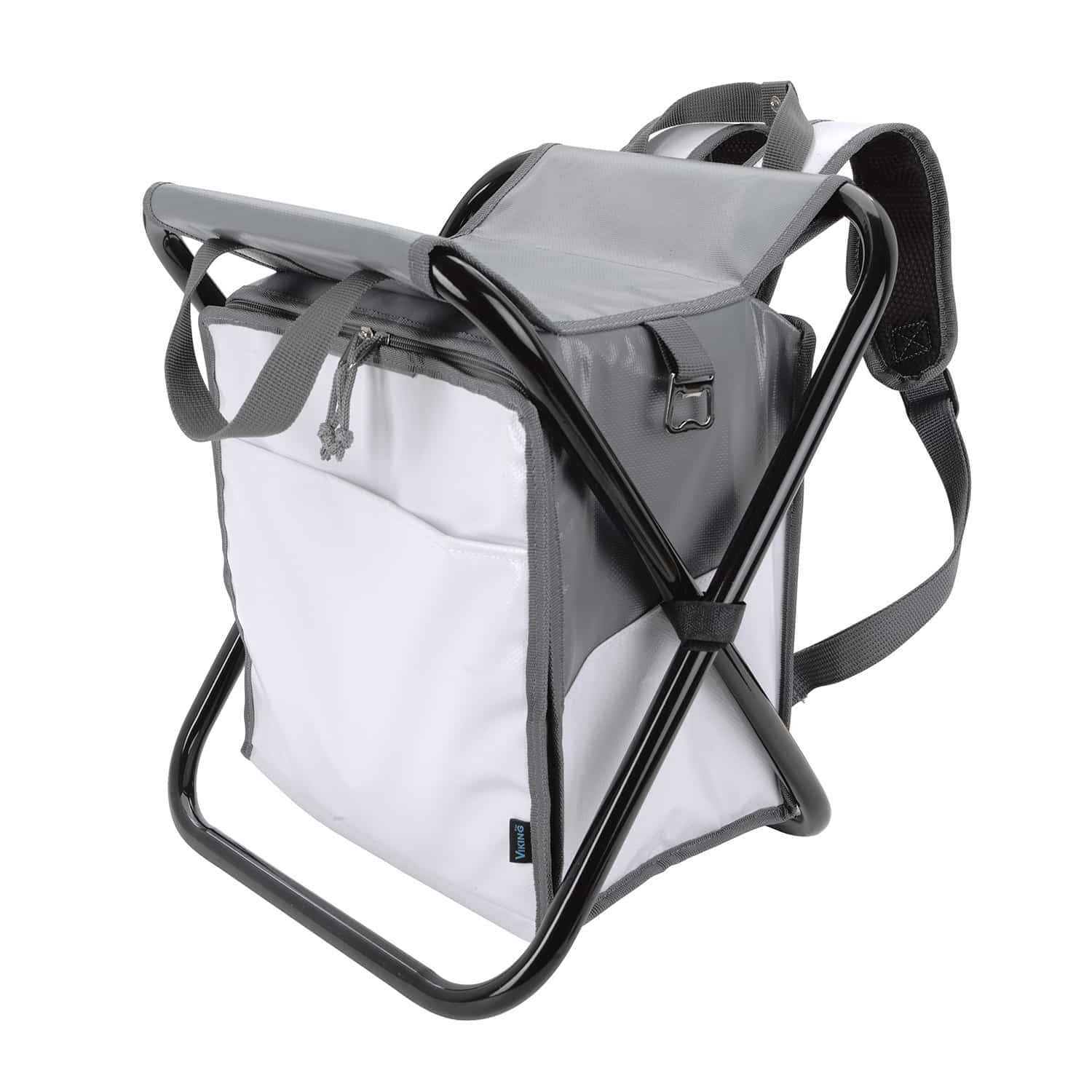The Viking Collection® Tarpaulin Backpack Chair combines a heat-sealed cooler with a water-repellent fabric and a durable frame for outdoor convenience. 11.4375″ W x 12.1875″ H
