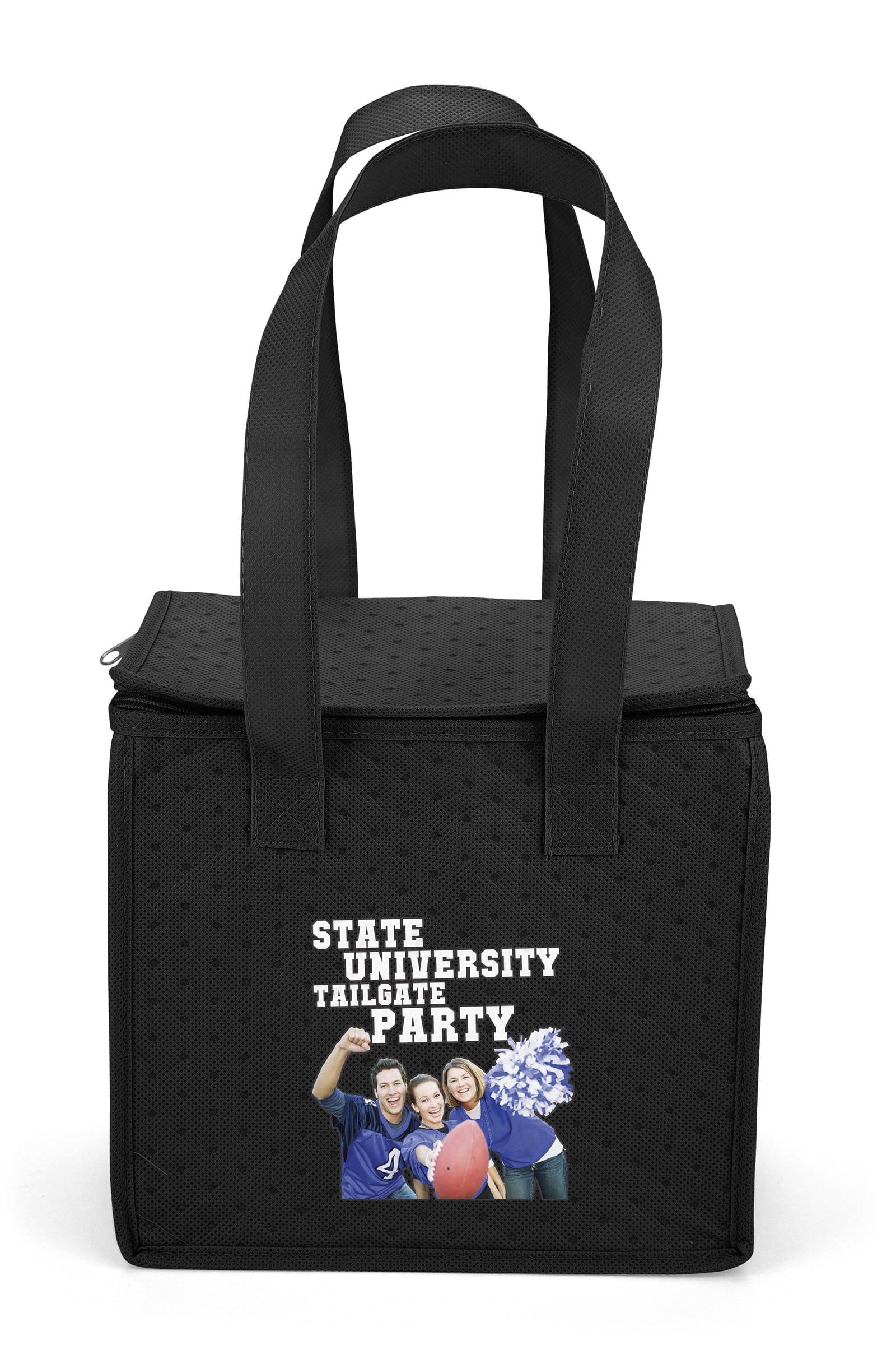 The Therm-O Cooler Tote™ is insulated to keep contents hot or cold. This lunch-size tote is made with a durable 238 combined GSM premium non-woven exterior, thermal foil interior, reinforced handles, zippered closure, and plastic bottom insert. Handles measure 1″-wide x 20″- long. 9″ W x 6″ D x 8″ H